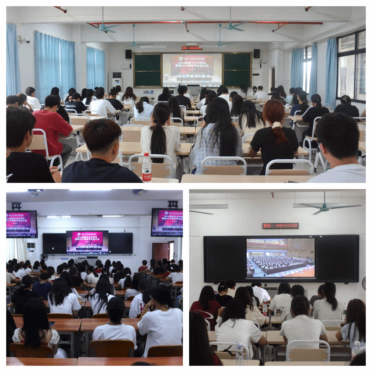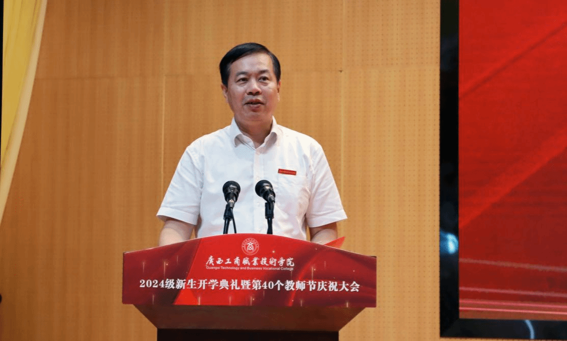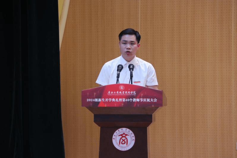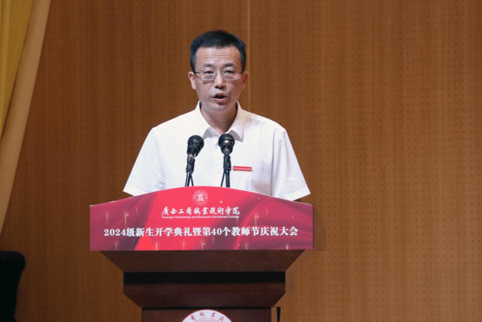 学校党委副书记、校长刘进在大会上致辞,向8300多名2024级新生表示热烈的欢迎,向全体教职工致以节日的问候和崇高的敬意。他勉励同学们一要坚定理想信念,争做信念如磐的有志青年,勇担社会责任,做信仰坚定的接班人;二要勤奋学习,争做本领过硬的有识青年,不断拓宽知识领域,积极参加丰富多彩的校园活动,努力成为学有所长、业有所专、技有所精的广商院人;三要敢于开拓创新,争做笃行实干的有为青年,勇于迎接新挑战,善于开辟新领域,心有大我,在协作奋进中彰显作为。