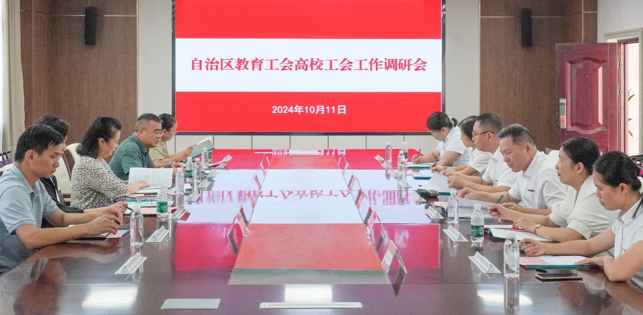 10月11日,自治区总工会二级巡视员黄月萍、自治区教育工会主席韦孟奇一行到学校武鸣校区开展工作调研。学校副校长陈宁春,学校工会负责人及相关工作人员参加调研。