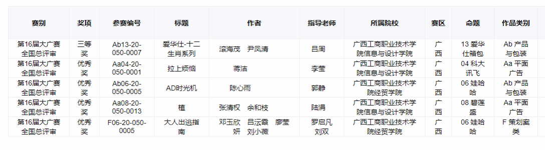 第16届全国大学生广告艺术大赛(广西赛区)获奖截图