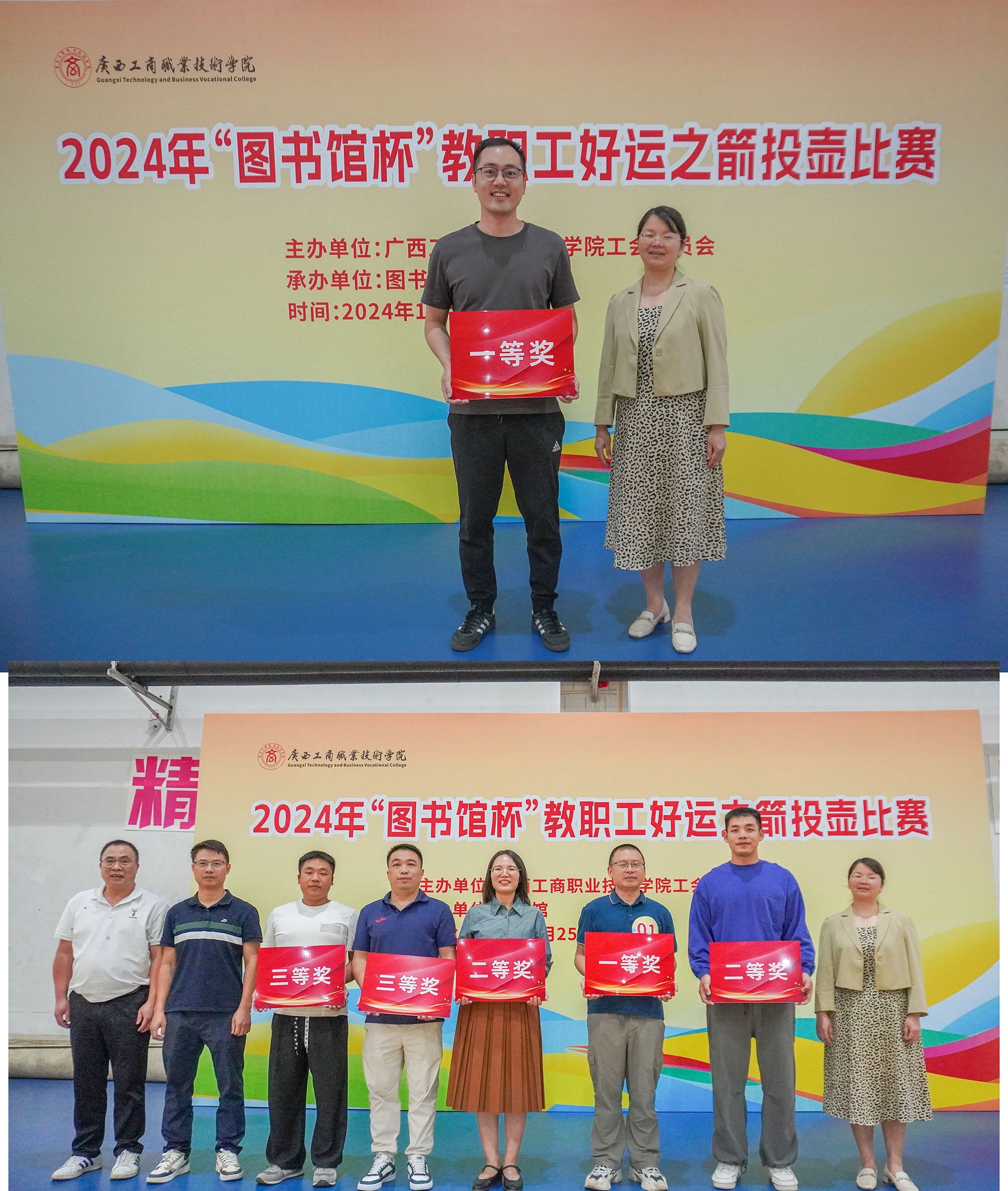10月25日,学校在鹏飞校区举行“图书馆”杯教职工好运之箭投壶比赛活动。本次比赛由学校工会主办,图书馆承办,全校共有8个工会分会和9个直属工会小组组织参赛,近400余名教职工会员参加。学校副校长郑华参加活动并宣布比赛开始。