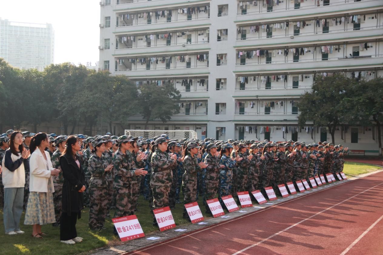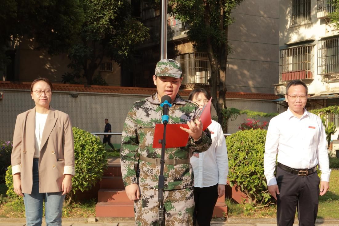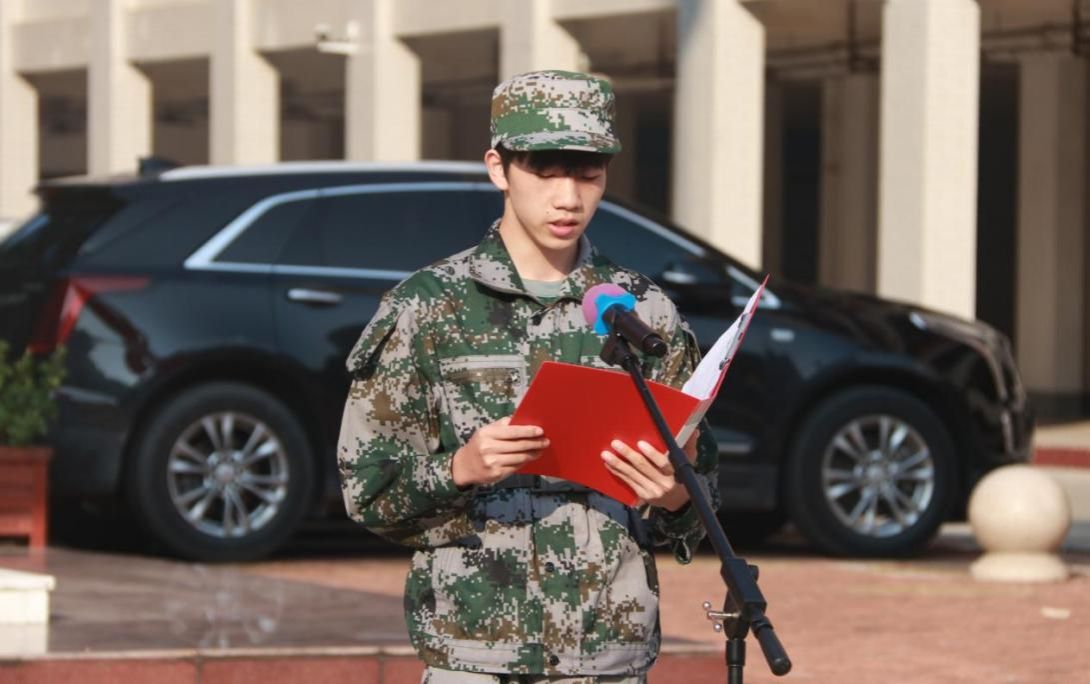 来自鹏飞校区信息与设计学院视觉2407班的学生胡家溪、中尧校区数会2403班的学生唐嘉源作为参训学生代表发言。他们表示,军训是一次自我挑战与成长的旅程,在接下来的训练过程中,将做到听从指挥,磨炼意志,增强技能,团结一致,力争蜕变为永不服输、永不言败的钢铁战士,以更加坚定的信念,勇敢面对未来生活的挑战,努力实现人生价值。