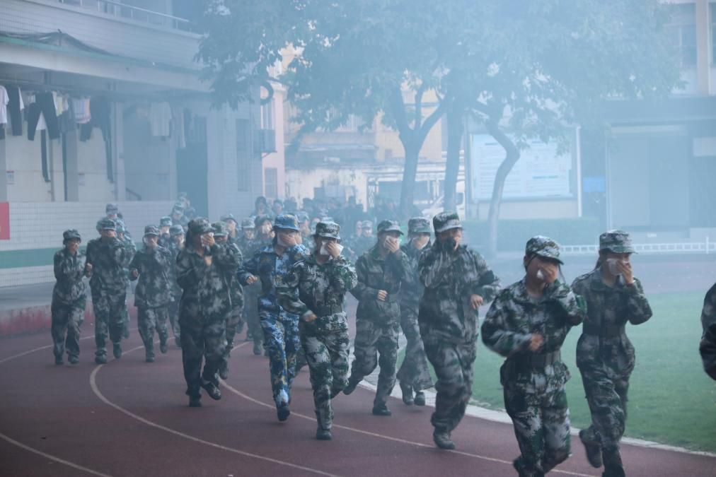 中午14:30,疏散演练开始,学生公寓模拟起火点开始点烟,火灾警报声立即拉响。各公寓楼从高到低逐层疏散,在引导员的指引下,全体师生用毛巾捂住口鼻,沿着疏散通道采用弯腰低头的姿势,有序地疏散至安全地带。