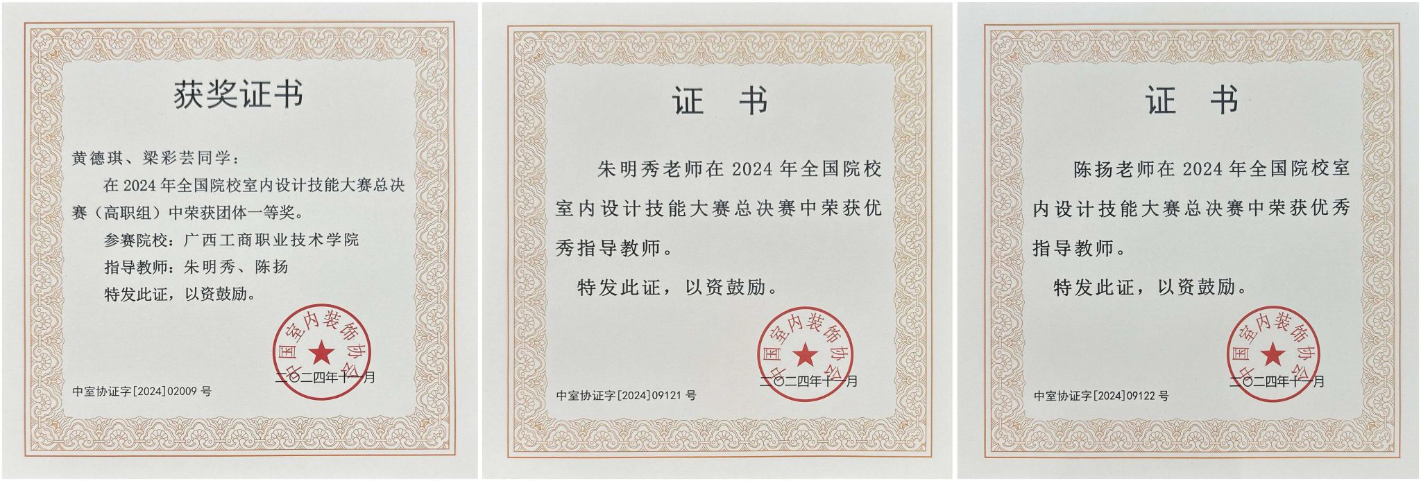 2024年11月16日,由中国室内装饰协会、教育部职业院校艺术设计类专业教学指导委员会、环境艺术设计类专业委员会组织举办的2024年全国院校室内设计技能大赛总决赛在南宁国际会展中心举行,来自来自全国168个参赛队同台竞技,pp电子朱明秀、陈扬两位教师指导的参赛队获得全国总决赛高职组一等奖。