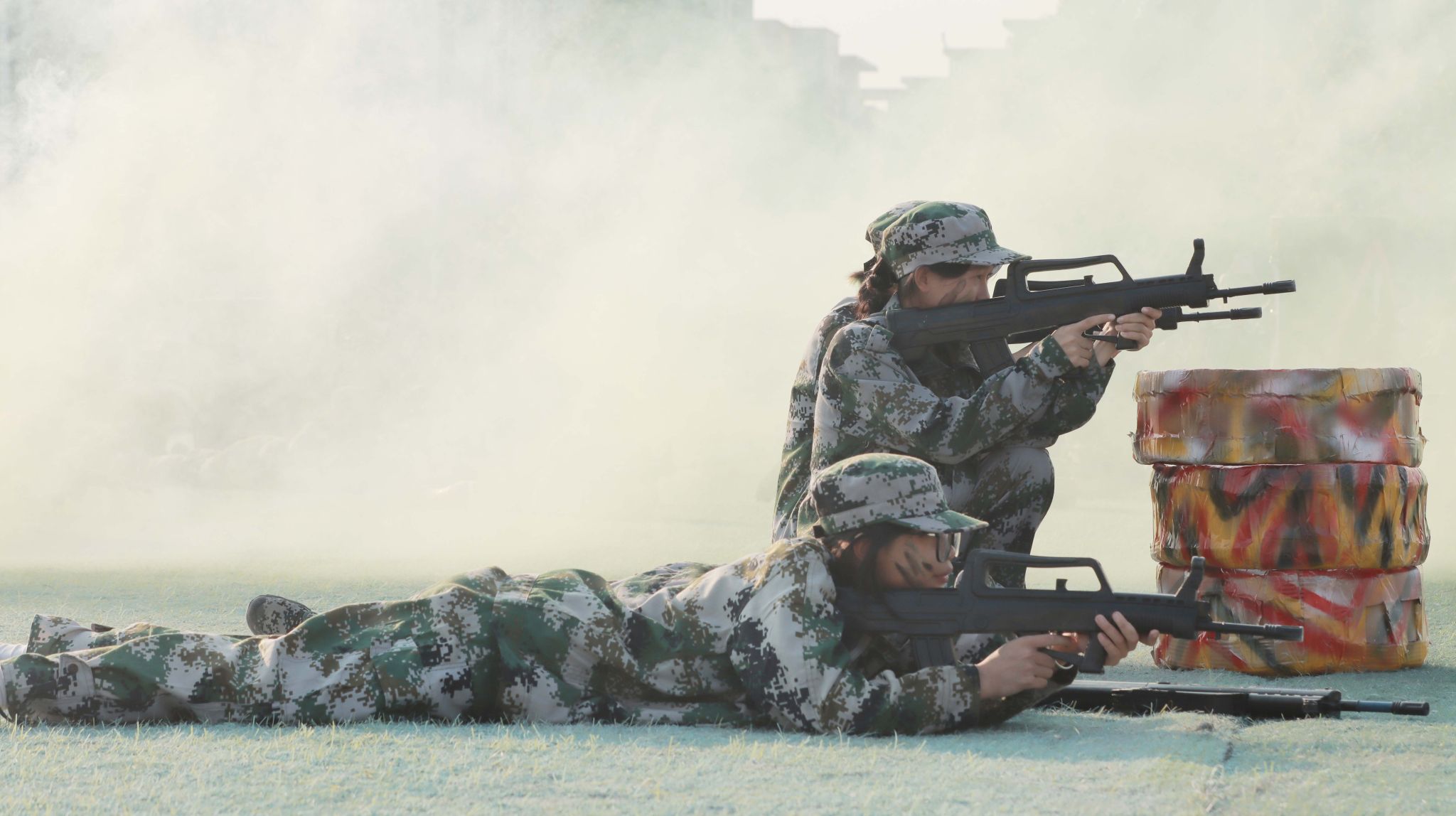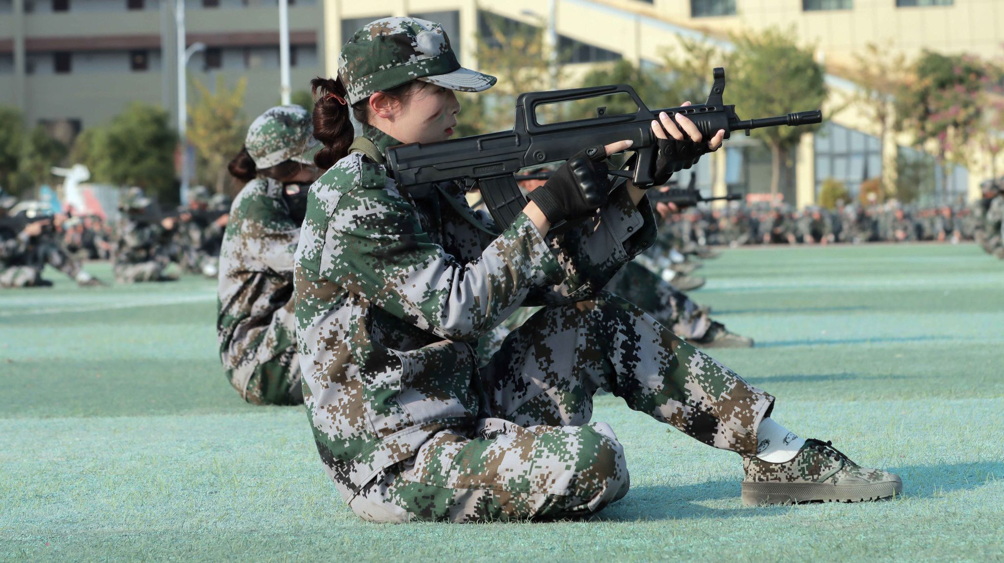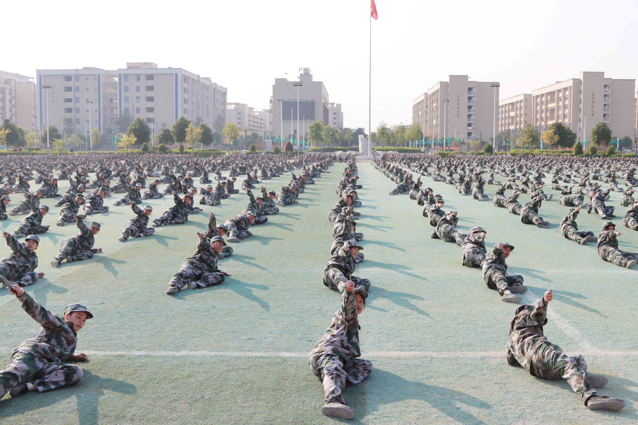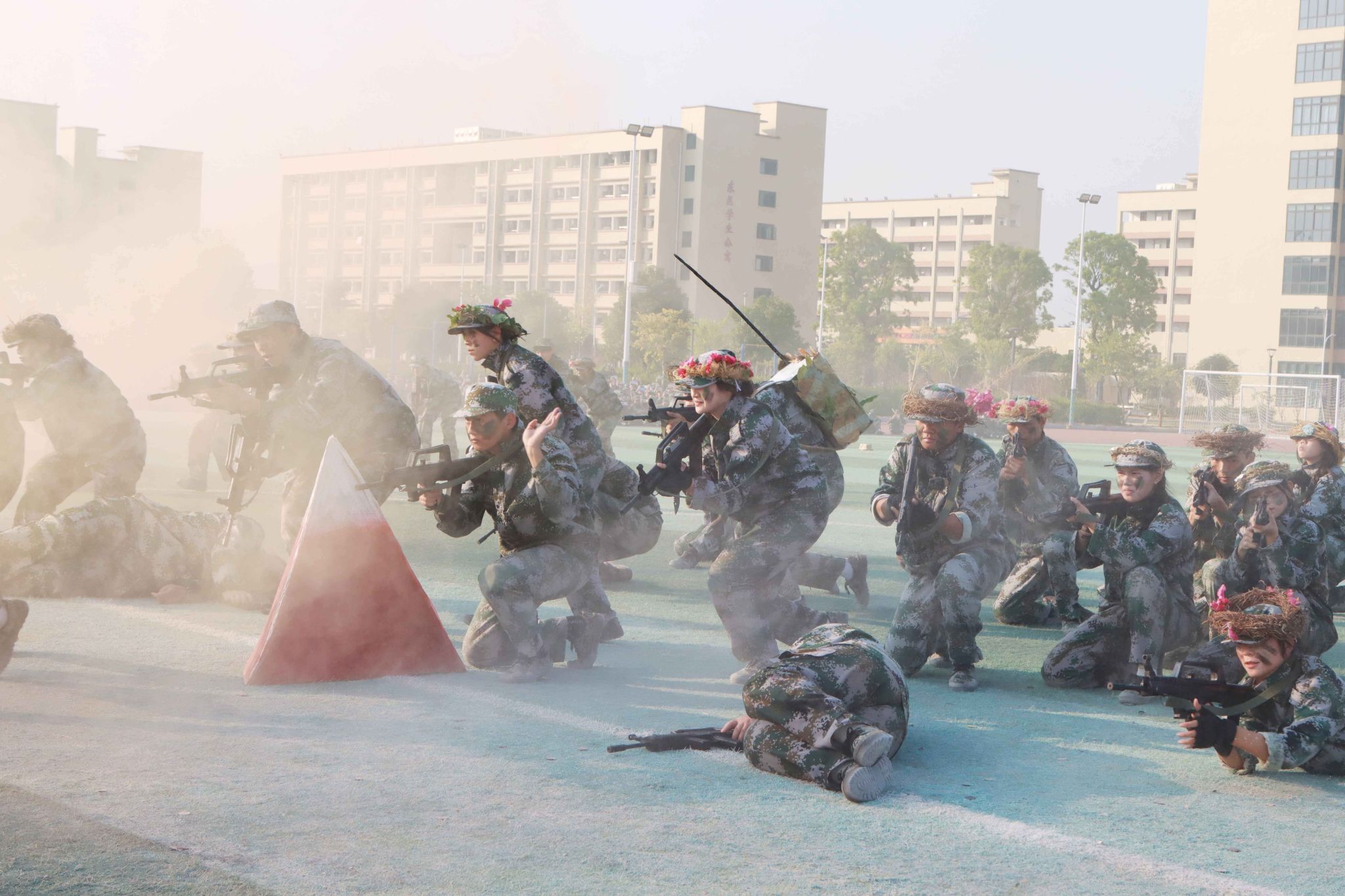 总结表彰大会在激昂的国歌声中拉开了帷幕。在分列式汇报展示中,2024级同学们以整齐划一的队列、昂首挺胸的姿态,步伐坚定地走向主席台,干脆利落,动作规范,充分展现了军训期间的刻苦训练成果。汇报表演中,各方队进行匕首操、擒敌拳、刺杀术、匍匐前进等战术表演,坚定的眼神、矫健的身姿、凌厉的拳风,展现出广商院学子不畏艰难、勇于挑战的精神面貌。