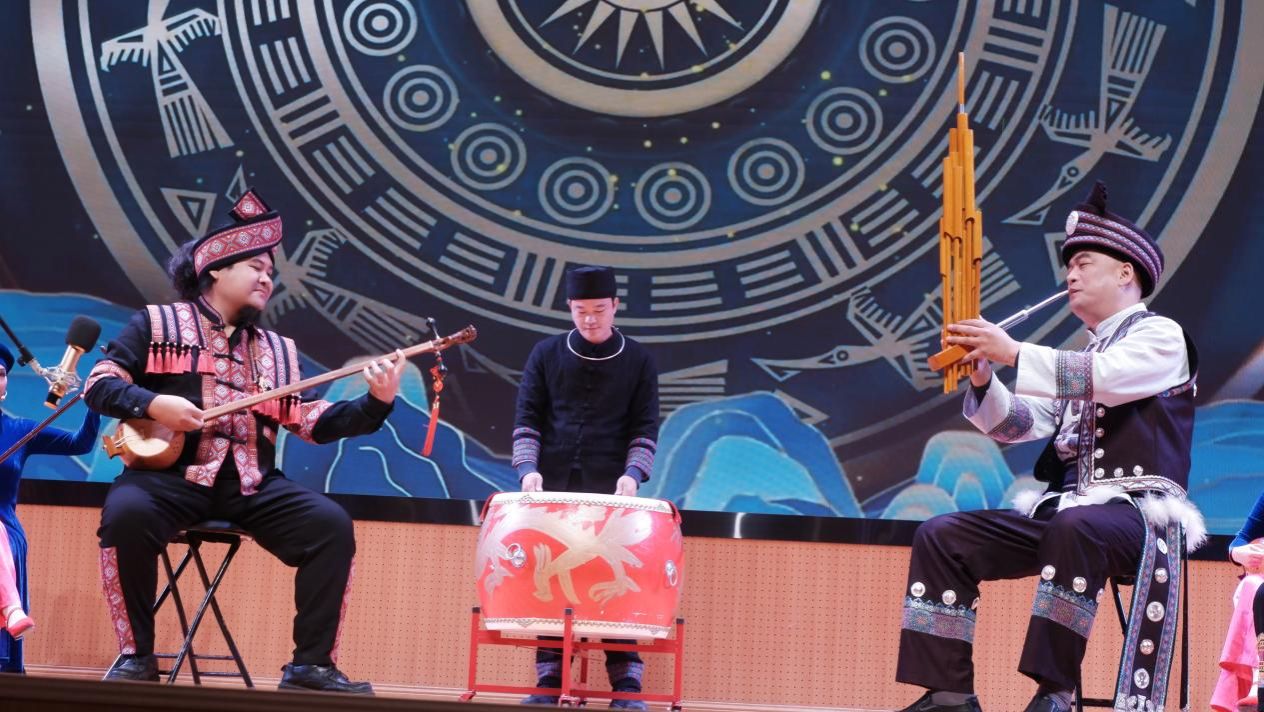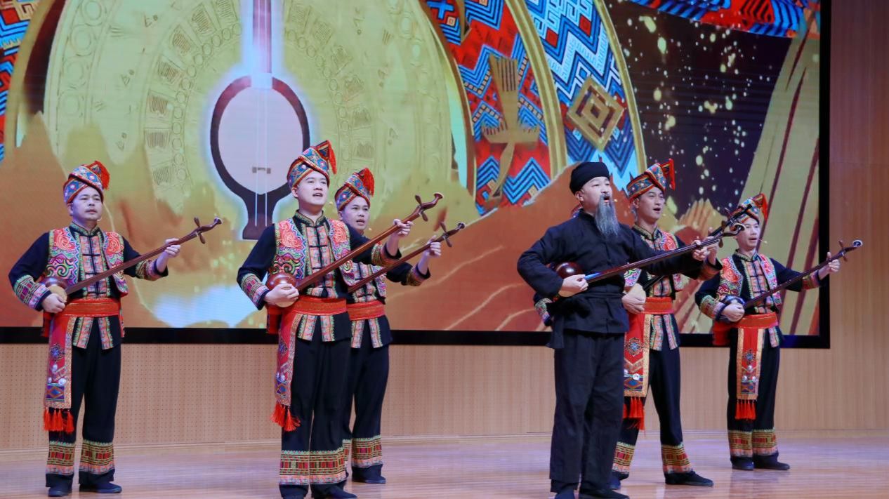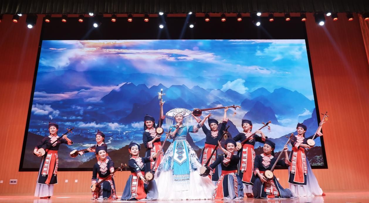 天琴,作为壮族古老的弹拨乐器,承载着丰富的民族文化和历史记忆。2021年,壮族天琴艺术被列入国家级非物质文化遗产代表性项目名录。《我唱天谣报党恩》是一部展示壮族天琴艺术的歌舞乐剧目,剧目内容紧扣时代脉搏,与中华优秀传统文化相互映照,展示了壮族人民满怀信心,沿着党中央指引的方向,昂首阔步踏上新征程。剧目中传统音乐与现代音乐相融合,更符合现代观众的审美,赢得了现场师生的阵阵掌声。
