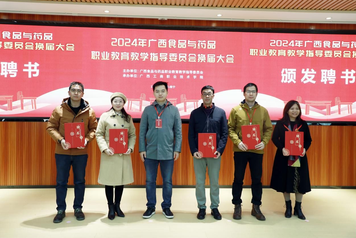 大会宣读新一届广西食品与药品职业教育教学指导委员会委员名单。其中,自治区粮食局副局长李国平任主任委员,学校党委书记李维、党委学生工作部部长谭波任副主任委员,学校副校长阙勇平任秘书长,学校粮油康旅学院李影球博士任委员。