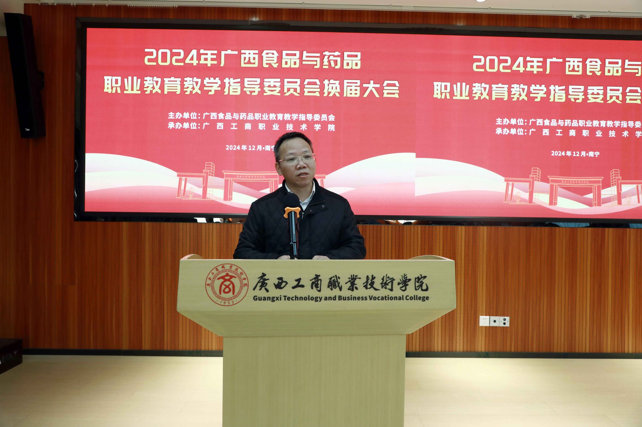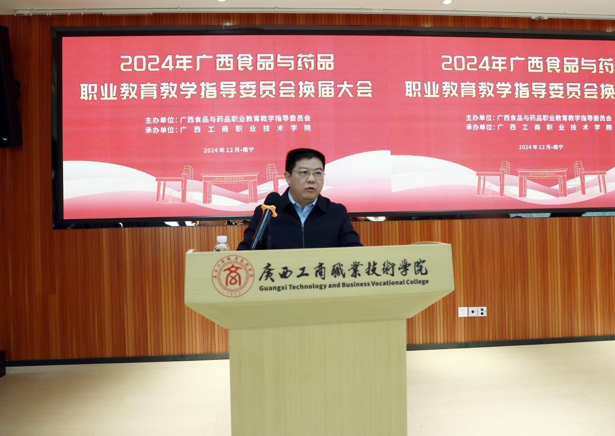 广西教育研究院职业教育研究所李春鹏所长代表自治区教育厅作讲话。他指出,广西食品与药品产业近年来发展势头强劲,产业升级步伐加快,集群效应逐步凸显,这离不开食品与药品高素质技术技能人才的强力支撑。他强调,要进一步增强职业教育的产业适应性,新一届食品药品行指委要紧紧围绕广西食品与药品职业教育的改革与发展大局,积极履行职责,充分发挥职能作用;要深入开展调研,加强对行业人才需求的预测分析,精准搭建供需桥梁;要注重创新实践,做好广西区内食品与药品职业院校的教学改革指导,提升人才培养质量,推进产教融合,助力职教出海。