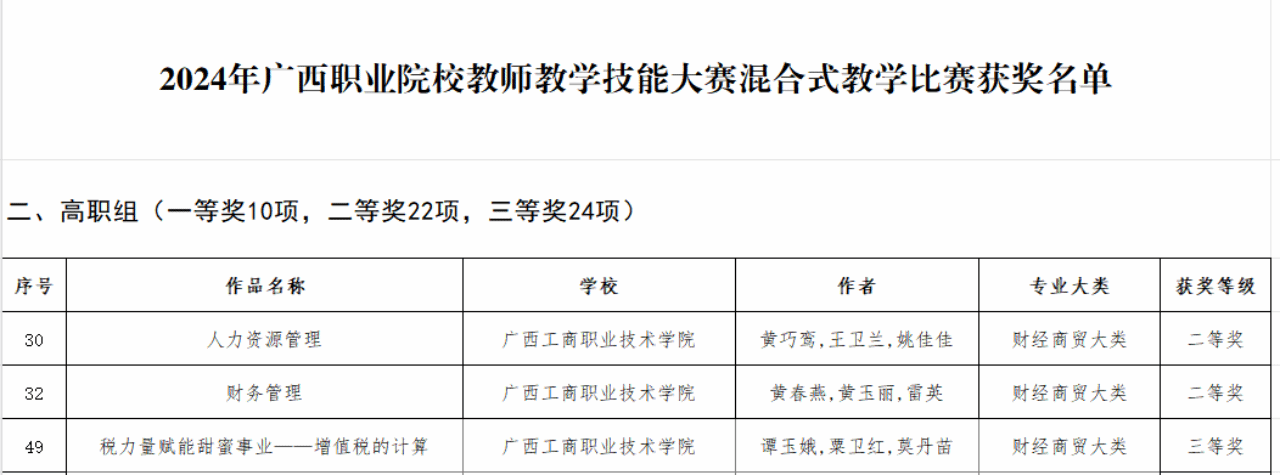 近日,自治区教育厅公布了2024年广西职业院校教师教学技能大赛混合式教学比赛及微课教学比赛获奖名单,pp电子教师在比赛中荣获佳绩,共获一等奖1个、二等奖4个、三等奖1个。