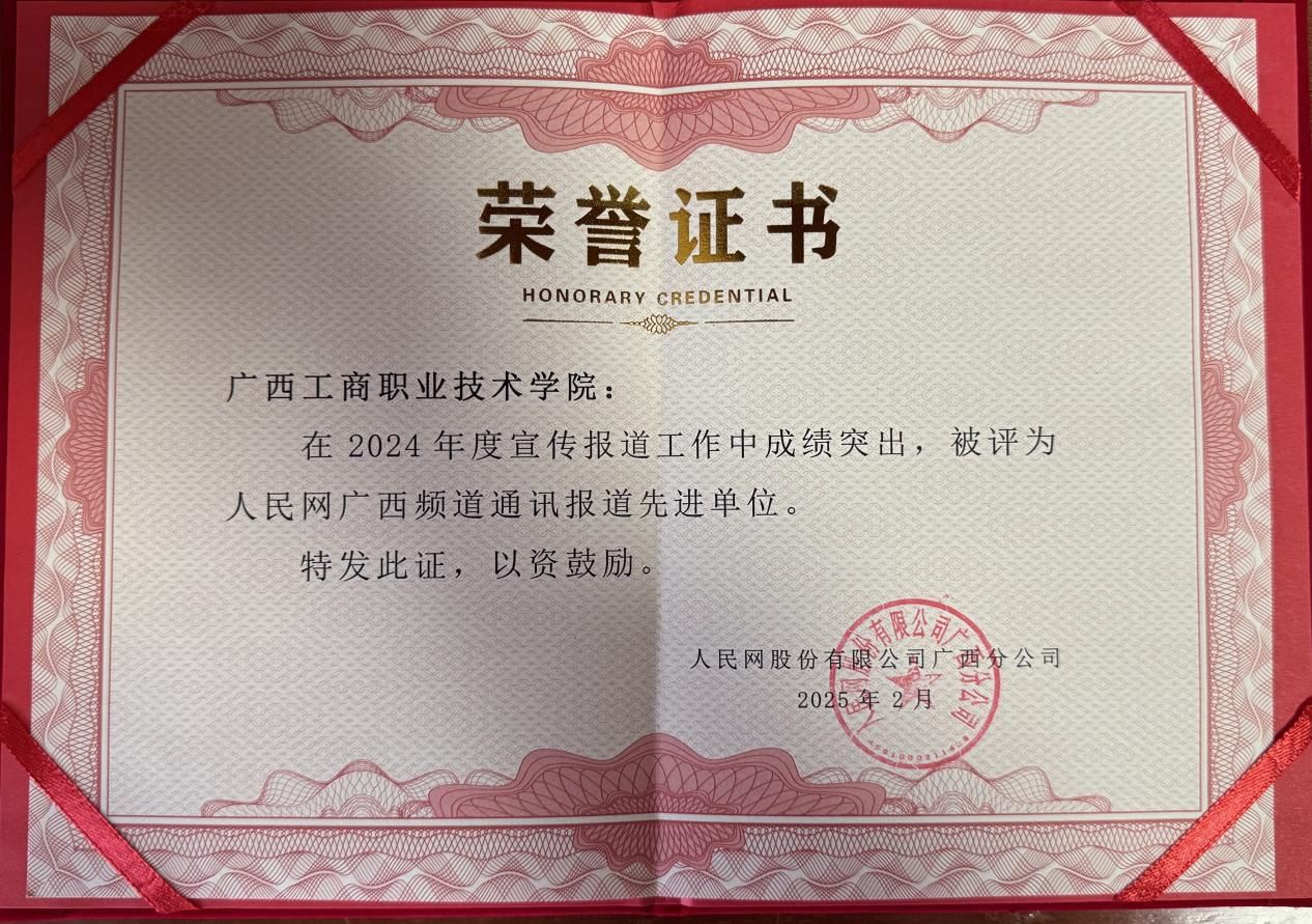 近日,人民网广西频道2024年度通讯报道先进单位评选结果出炉,pp电子凭借在新闻宣传工作中的突出表现,荣获“人民网广西频道通讯报道先进单位”称号,1名教师获评为“人民网广西频道优秀通讯员”。