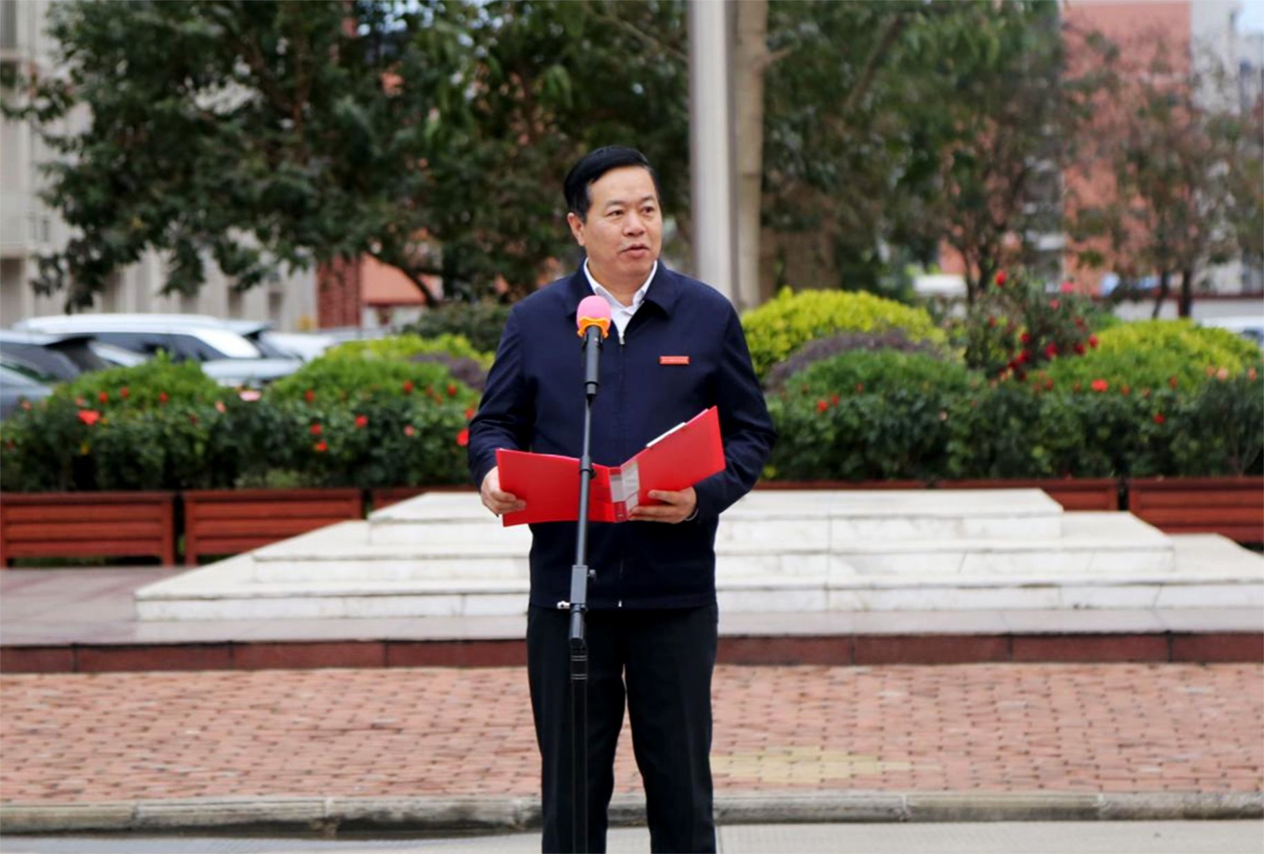 旗展新篇,逐梦新程。2月24日,学校在武鸣校区、鹏飞校区、中尧校区举行2025年春季学期开学升国旗仪式。学校领导李维、刘进、安仲文、韦云凤、陈宁春、阙勇平、郑华出席升旗仪式,全体中层管理人员、全体辅导员以及全体2024级学生参加升旗仪式。