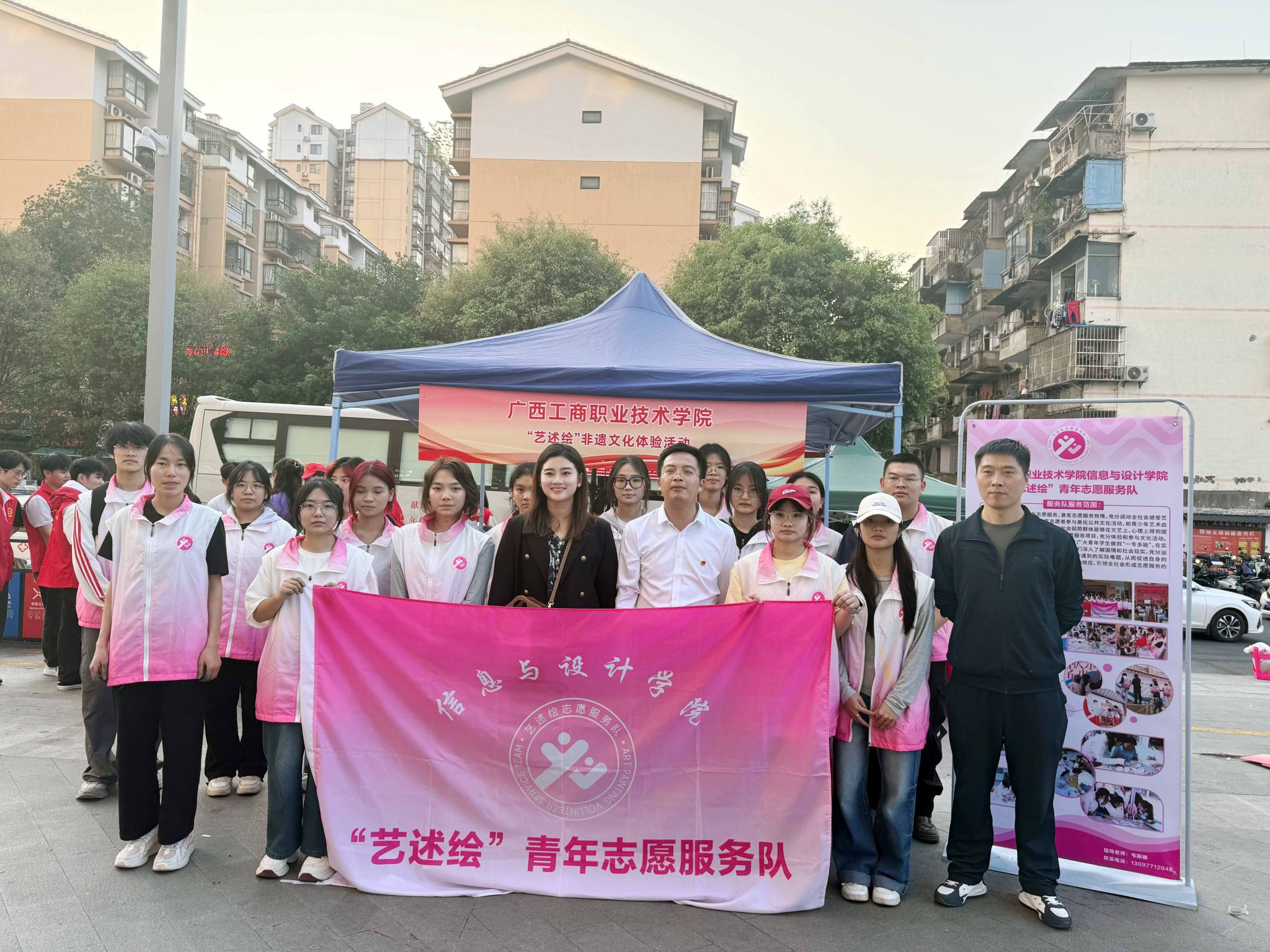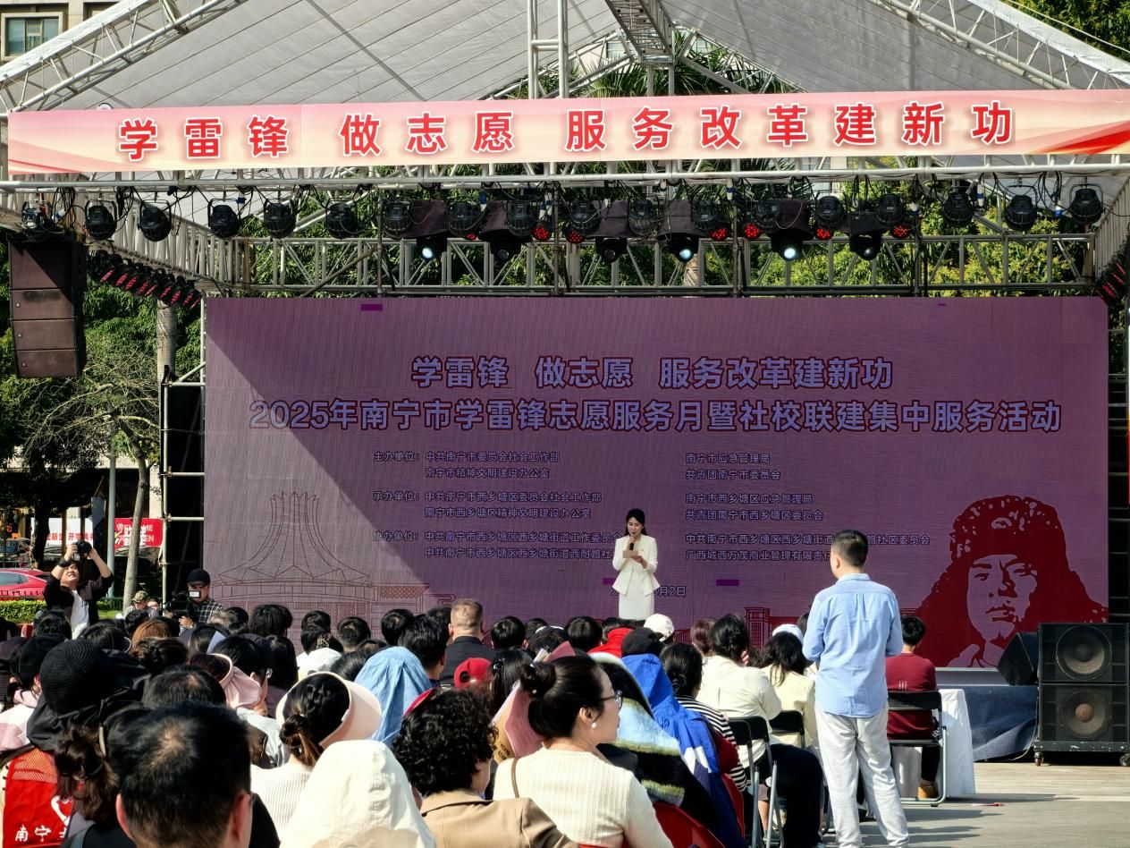 在第62个学雷锋纪念日来临之际,为更好地弘扬雷锋精神,推动志愿服务活动的广泛开展,2025年3月2日,中共南宁市委员会社会工作部联合相关部门,在西乡塘区成功举办“2025年南宁市三月学雷锋活动月集中志愿服务暨社校联建洽谈活动”。pp电子信息与设计学院“艺述绘”青年志愿服务队作为受邀单位参与活动。