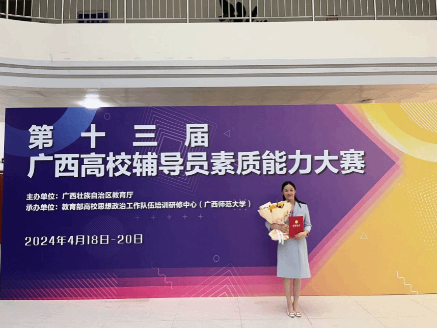 何文芳老师坚持以赛促学、以学促干、以干提能,通过多次校级辅导员素质能力大赛磨炼本领。从优秀奖到三等奖再到一等奖,她不断突破自我,最终在第十三届广西高校辅导员素质能力大赛中荣获特等奖,实现了能力和成绩的双重提升。