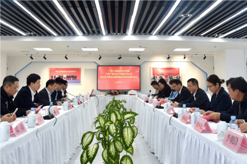 座谈会上,刘进介绍了pp电子的办学历史、人才培养、师资队伍、专业建设等基本情况,强调职业教育的生命力在于与行业同频共振。广西广电科技公司南宁分公司是自治区文化科技领域的排头兵,响应国家深化产教融合的号召,积极推动行业前沿技术进校园。校企双方将在七大领域深耕合作,包括智慧校园、智慧党建、融媒体中心建设、广电5G示范、人才共培、实训就业、文化数字化等,实现校企双赢、人才共育。