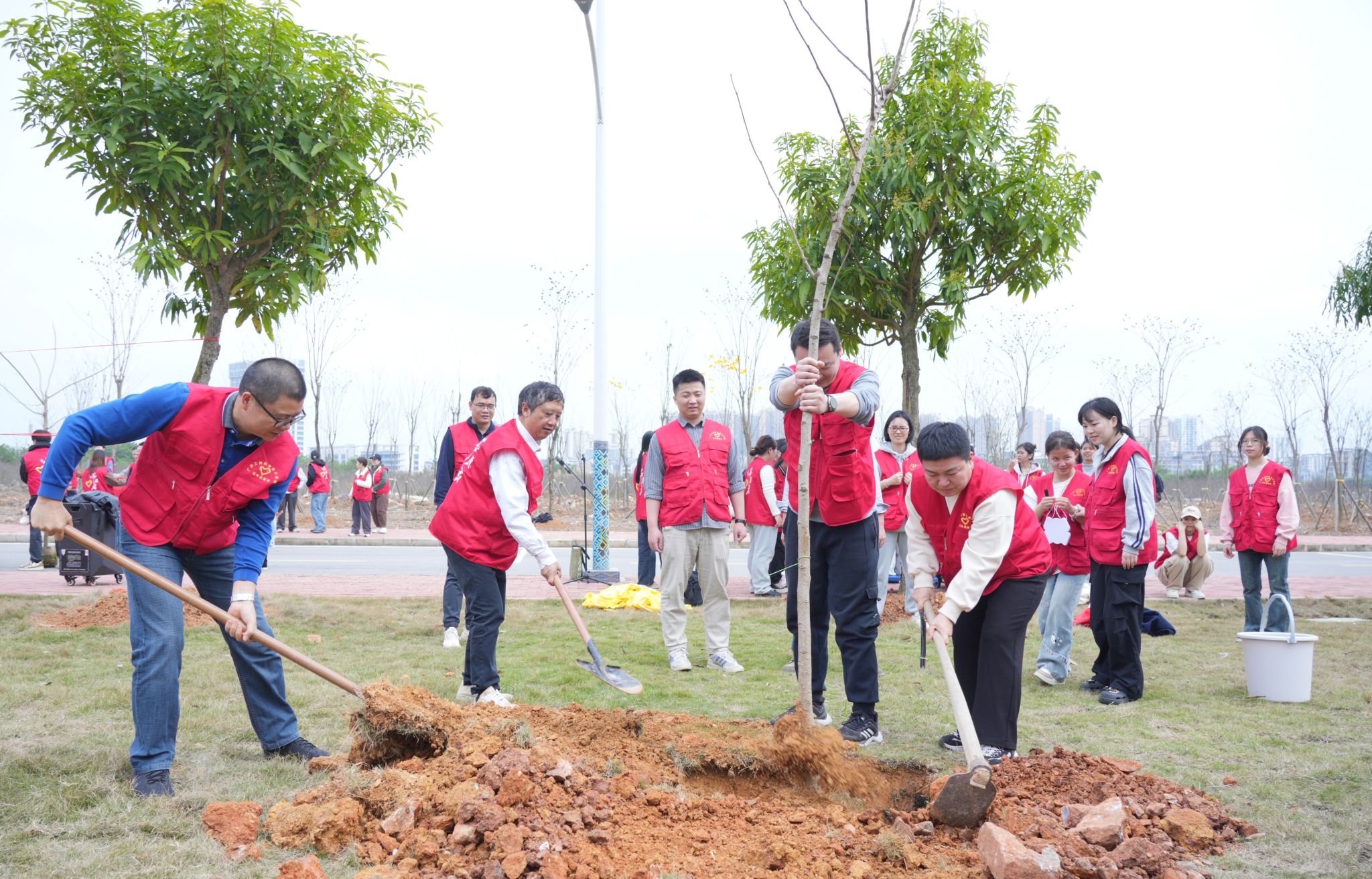 (青年师生参与植树活动)