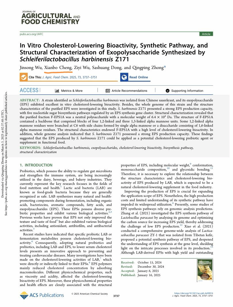 该杂志是一本在农林科学领域享有高度声誉的期刊,创刊于1953年,由American Chemical Society(美国化学学会)出版发行,是农业和食品化学领域的老牌SCI期刊。pp电子承担课题中多糖结构的研究任务,为功能性食品开发及胆固醇代谢调控提供了重要理论支持,标志着pp电子在多糖领域的研究迈上新台阶。