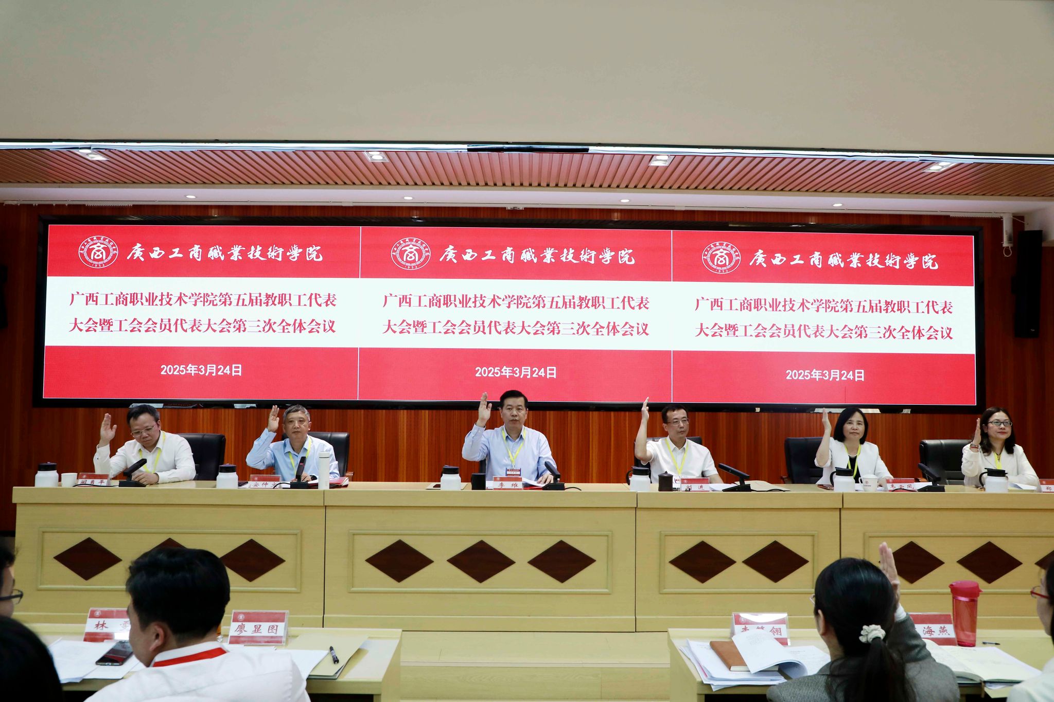 凝心聚力谋发展,砥砺奋进谱新篇。3月24日,学校在鹏飞校区召开第五届教职工代表大会暨工会会员代表大会第三次全体会议。学校党委书记李维,党委副书记、校长刘进,党委副书记安仲文,党委副书记、纪委书记韦云凤,副校长阙勇平,副校长郑华,来自全校各部门各单位的教代会代表、工代会代表、列席人员、特邀代表参加会议。