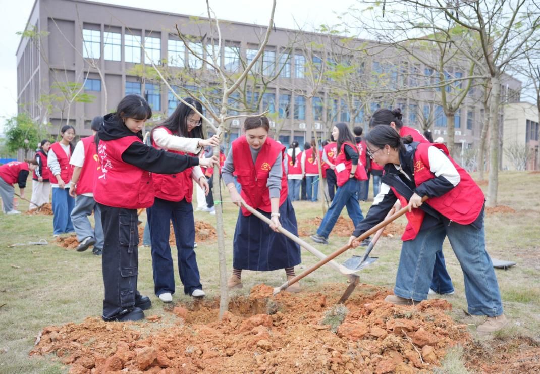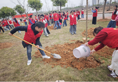 3月11日,第47个植树节来临之际,学校团委组织青年师生代表在武鸣校区开展了“植一株春绿,溢一片春色”绿色校园志愿活动,将学雷锋志愿服务与生态文明建设深度融合。挥锹铲土、扶苗填坑、浇水灌溉……整个场面繁忙而有序。经过努力,20株凤凰木的树苗形成了一道亮丽的风景线。参与活动的师生纷纷表示,虽然劳动很累,但也很快乐。会把今天的行动成为践行环保的起点,将绿色责任化为日常行动,做生态文明践行者与传播者。