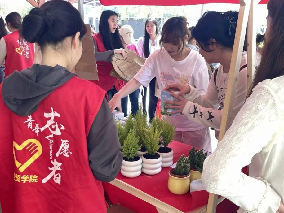 经贸与康旅学院在学雷锋市集开设了“手植新绿,扫尽焦‘绿’”摊位,以“纸盒换绿植”为载体,鼓励同学们以废弃纸盒换取绿植,活动现场热闹非凡,同学们纷纷带着积攒的纸箱来兑换心仪的绿植,用实际行动践行环保理念。多肉、草头娃娃、“放‘青’松”盆栽……各种绿植被大家领取,为宿舍增添一抹绿色。同学们通过亲手回收废品、养护绿植,对环保有了更深刻的理解,纷纷表示要从点滴做起,守护地球。
