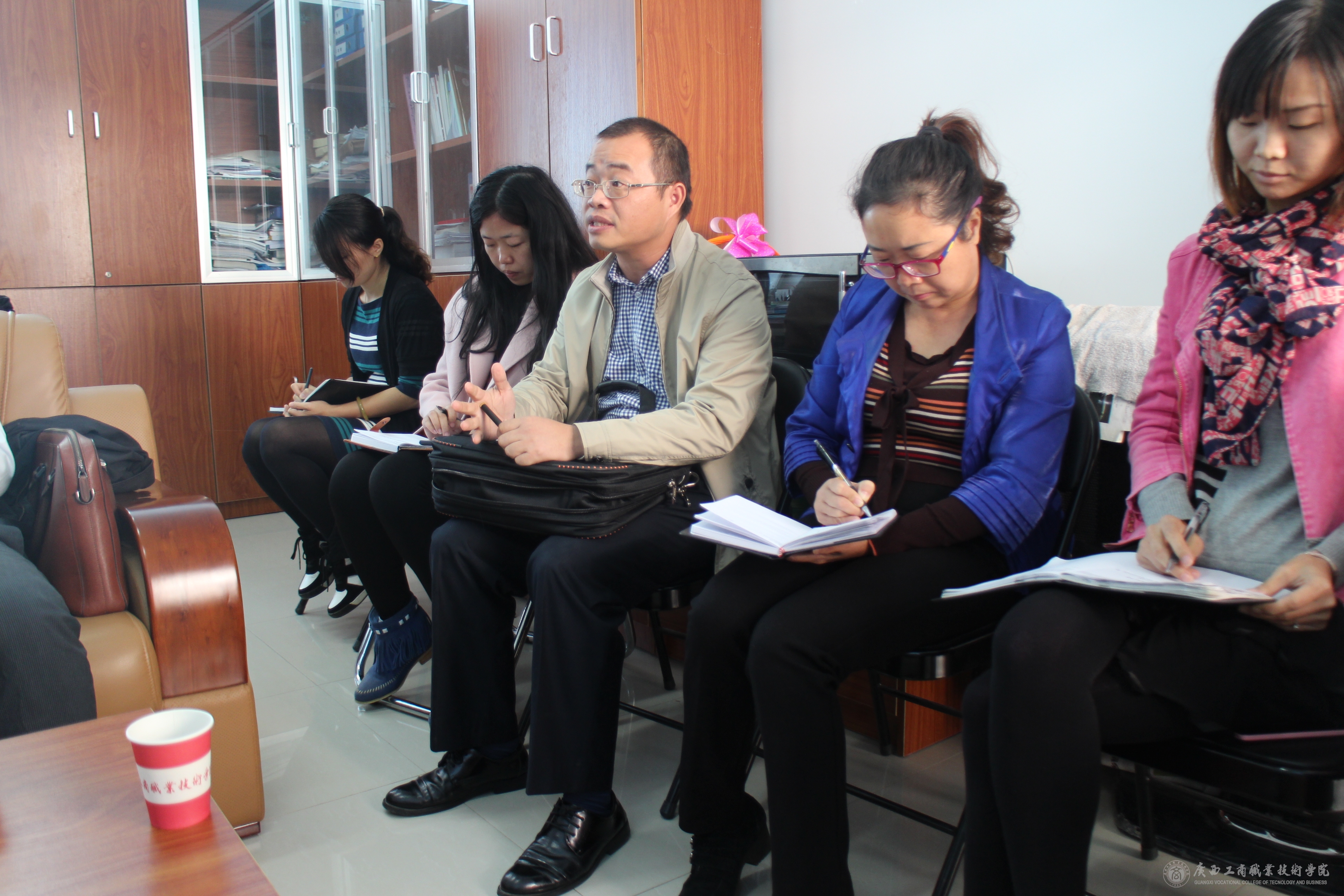 根据自治区党委组织部《关于在“三严三实”专题教育第三专题学习研讨前开展调查研究的通知》(桂组通字〔2015〕63号)精神和学院党委有关工作安排,2015年11月2日上午,陈杰院长带领党委组织部(学院人事处)、教务科研处的同志一行3人到联系点经管系开展调研工作。