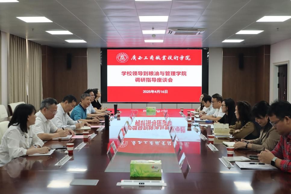 4月16日,学校党委书记李维,党委副书记安仲文,副校长阙勇平到武鸣校区调研粮油与管理学院、经贸与康旅学院教育教学工作。党委办公室、党委组织部、教务科研处负责人及粮油与管理学院、经贸与康旅学院负责人、各教研室主任、教师代表共同参加了调研座谈活动。座谈会由安仲文副书记主持。