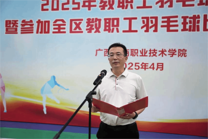4月18日,学校在鹏飞校区举行2025年教职工羽毛球比赛暨参加全区教职工羽毛球比赛选拔赛开赛式。学校领导李维、刘进、安仲文、韦云凤、陈宁春、阙勇平出席开赛式。各代表队全体人员,各部门、各单位代表队领队、教练、教职工代表,全体裁判员参加开赛式。学校党委副书记、工会主席安仲文主持开赛式。
