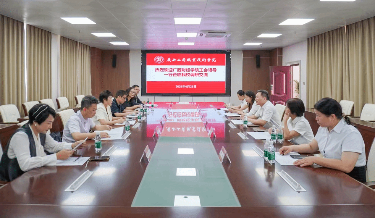 参观结束后,召开了座谈会。会上,pp电子工会负责人介绍了学校工会在智慧工会建设、职工之家建设、教职工福利、“每天锻炼一小时,健康工作五十年,幸福生活一辈子”体育运动等方面的特色工作和取得的成效。吴清华常务副主席分享了广西财经学院工会在民主管理、服务教职工、维护职工权益等方面的经验和做法。