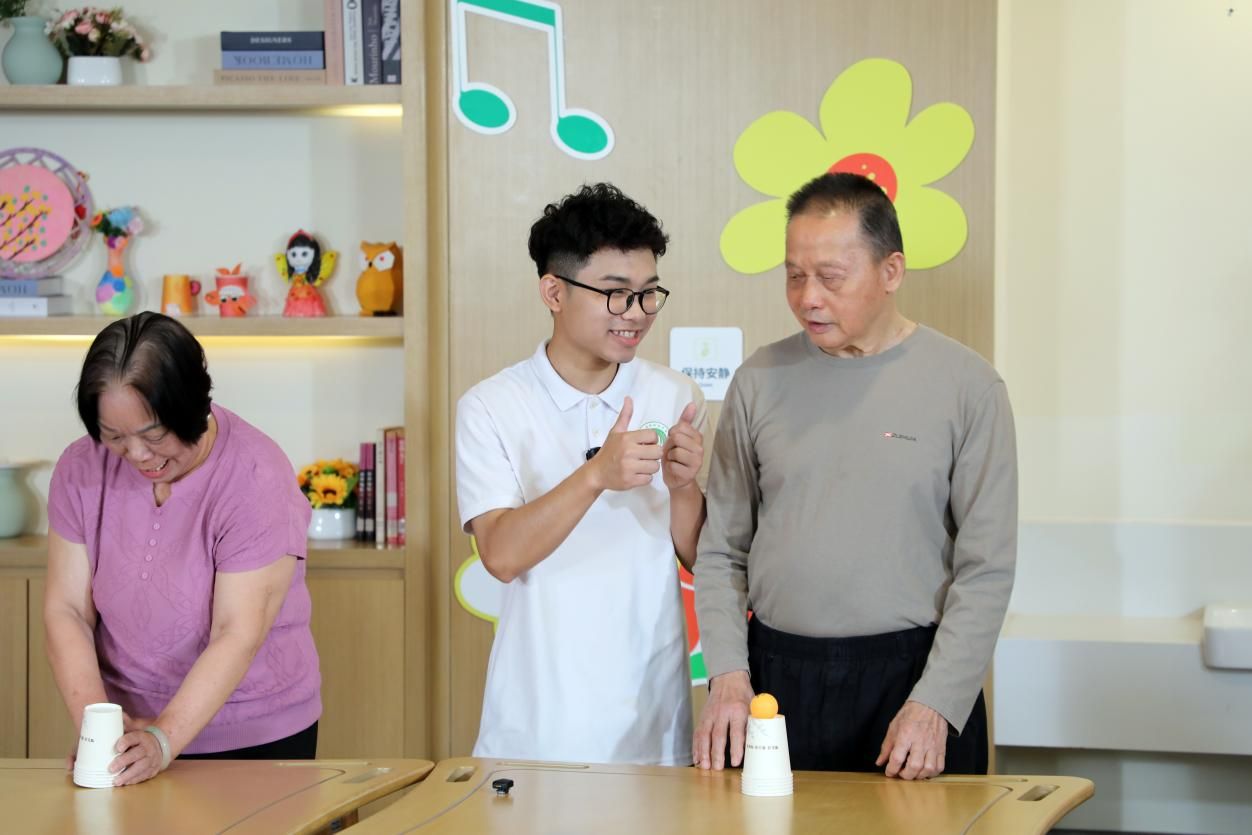 在录制现场,pp电子智慧健康养老服务与管理专业的同学们与另外2所高职院校的同学组成康养小队,分为活动策划组和护理保健组,以真人秀形式进行节目录制。活动策划组的同学们带领养老中心的老人们一起做游戏、唱歌、节目表演等,提高老人们的精神愉悦感;护理保健组的同学们为老人们进行推拿、复健等不同的医疗保健项目,提高老人们的身体健康水平。节目顺利完成录制,录制过程十分活泼有趣,欢呼声、笑声萦绕在现场,充分展现了pp电子学子的专业能力。