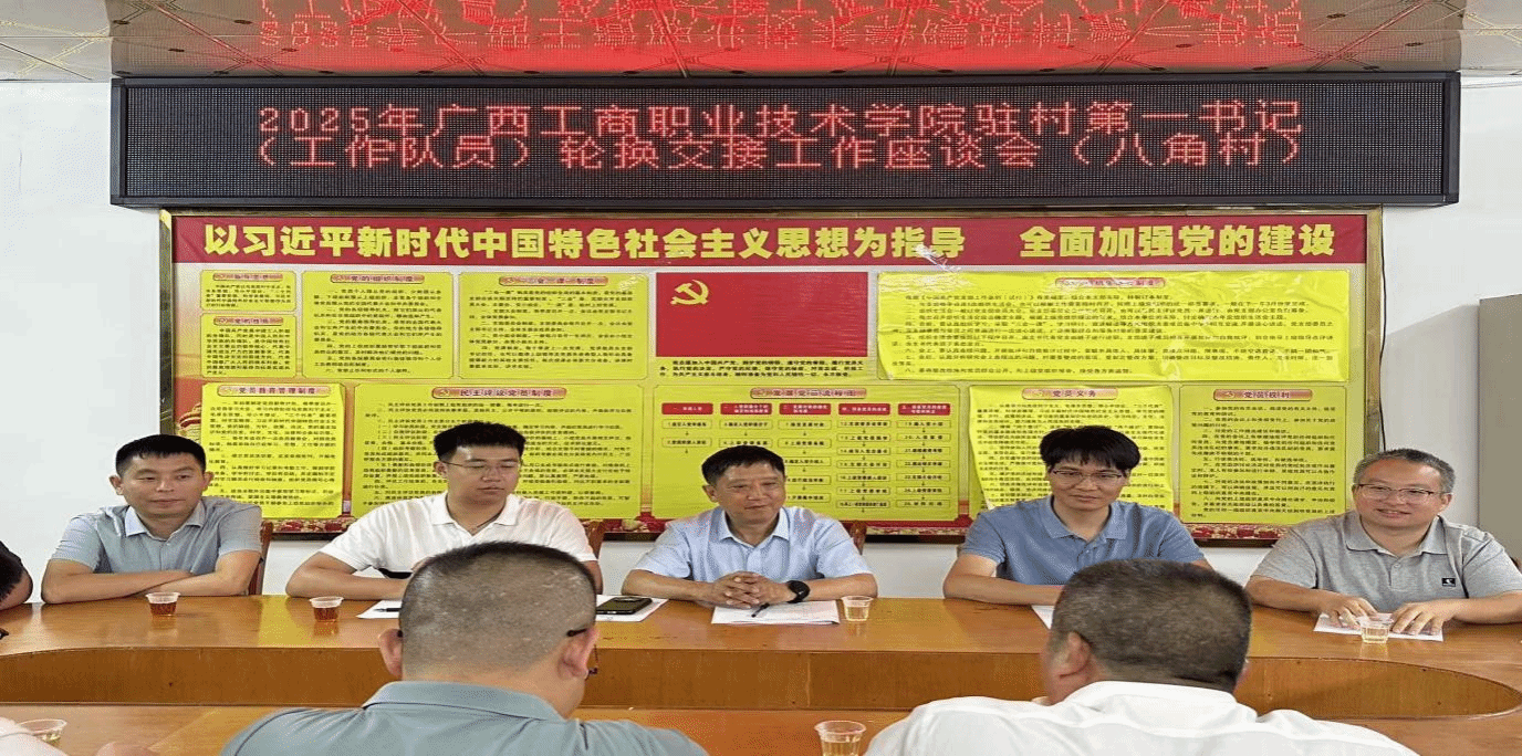 抵达目的地后,校领导一行分别与驻村村委领导班子、驻村第一书记和工作队员召开交流座谈会。会上,学校领导详细介绍了学校情况及新选派驻村工作队员的专业特长与工作优势,认真聆听原驻村第一书记的工作汇报,深入了解帮扶村当前的发展现状。学校领导表示,希望新选派的第一书记和工作队员在接下来的驻村工作中,强化责任,不负组织重托,以高度的责任心和使命感接稳接力棒,跑好接力赛,做到乡村振兴工作责任不缺位、工作不断档、力度不减弱,带领本村实现产业振兴、人才振兴、文化振兴、生态振兴、组织振兴,续写乡村振兴新篇章。新老队员纷纷表示,严格落实交接的各项工作任务,以高度的责任感和使命感推动帮扶工作见实效,为陆川县乡村振兴注入新动力。