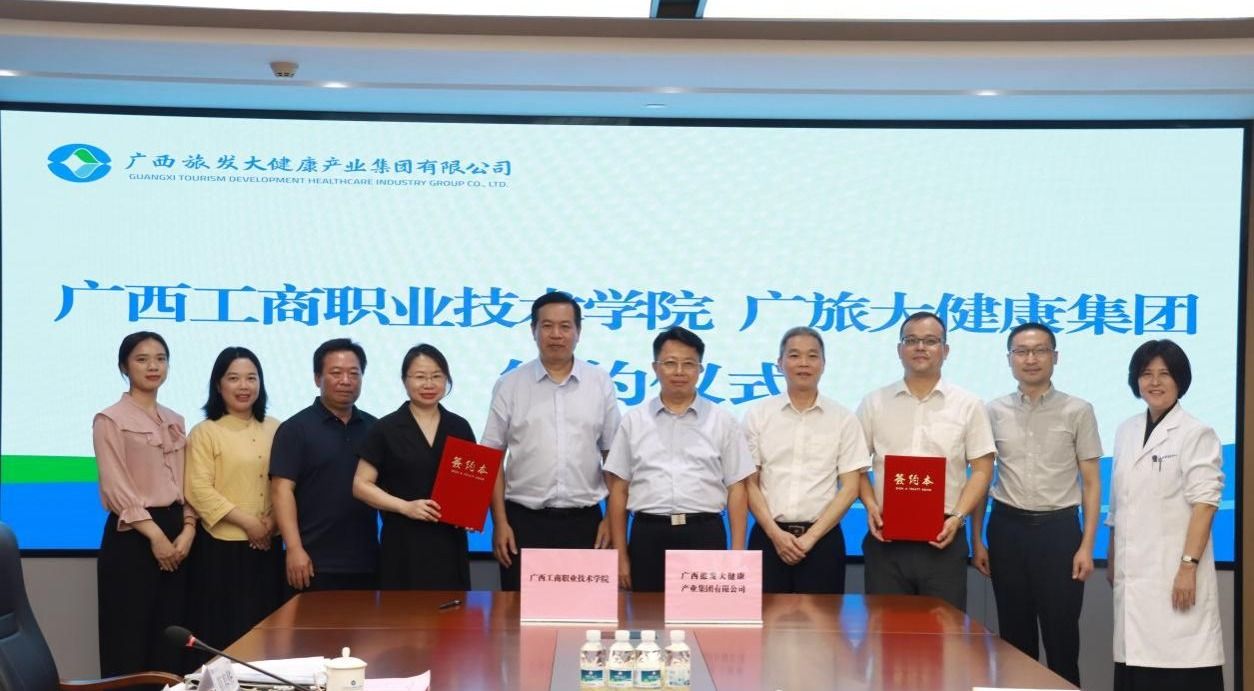 5月14日,学校与广西旅发大健康产业集团有限公司开展“校企合作、访企拓岗”座谈会并签署战略合作协议。学校党委书记李维,广旅集团党委委员、副总经理黄延出席会议。学校经贸与康旅学院院长李红梅和广旅大健康集团党委副书记、纪委书记、分工会主席宋志鹏代表双方进行签约。学校有关工作负责人、广旅大健康产业集团有关工作负责人参加座谈会并见证签约。