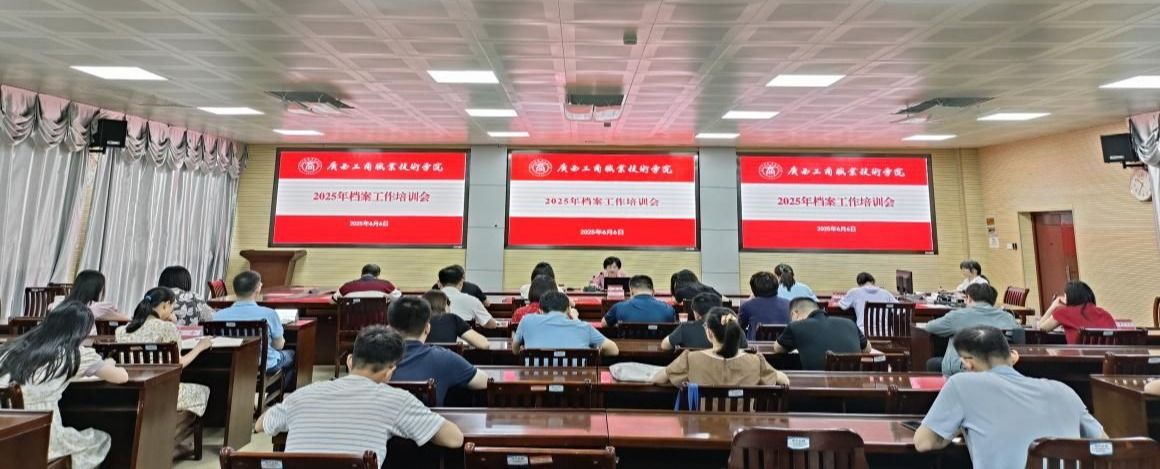 为贯彻落实全区档案工作会议精神,进一步加强和规范学校档案管理工作,确保学校2024年度档案材料归档工作顺利开展,2025年6月6日,学校在鹏飞校区召开2025年档案工作培训会议。学校各部门、各单位档案工作分管领导及兼职档案工作人员参加会议。会议由党委办公室(学院办公室)副主任岑郁主持。