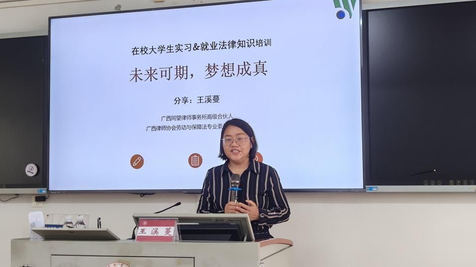 为进一步增强pp电子学生的法律意识,防范实习与就业相关的法律风险,帮助学生全面了解实习与就业相关的法律法规,2025年6月20日,学校邀请学校法律顾问、同望律师事务所律师王溪蔓在鹏飞校区举办了一场主题为“职业院校学生实习与就业法律问题”的专题讲座。
