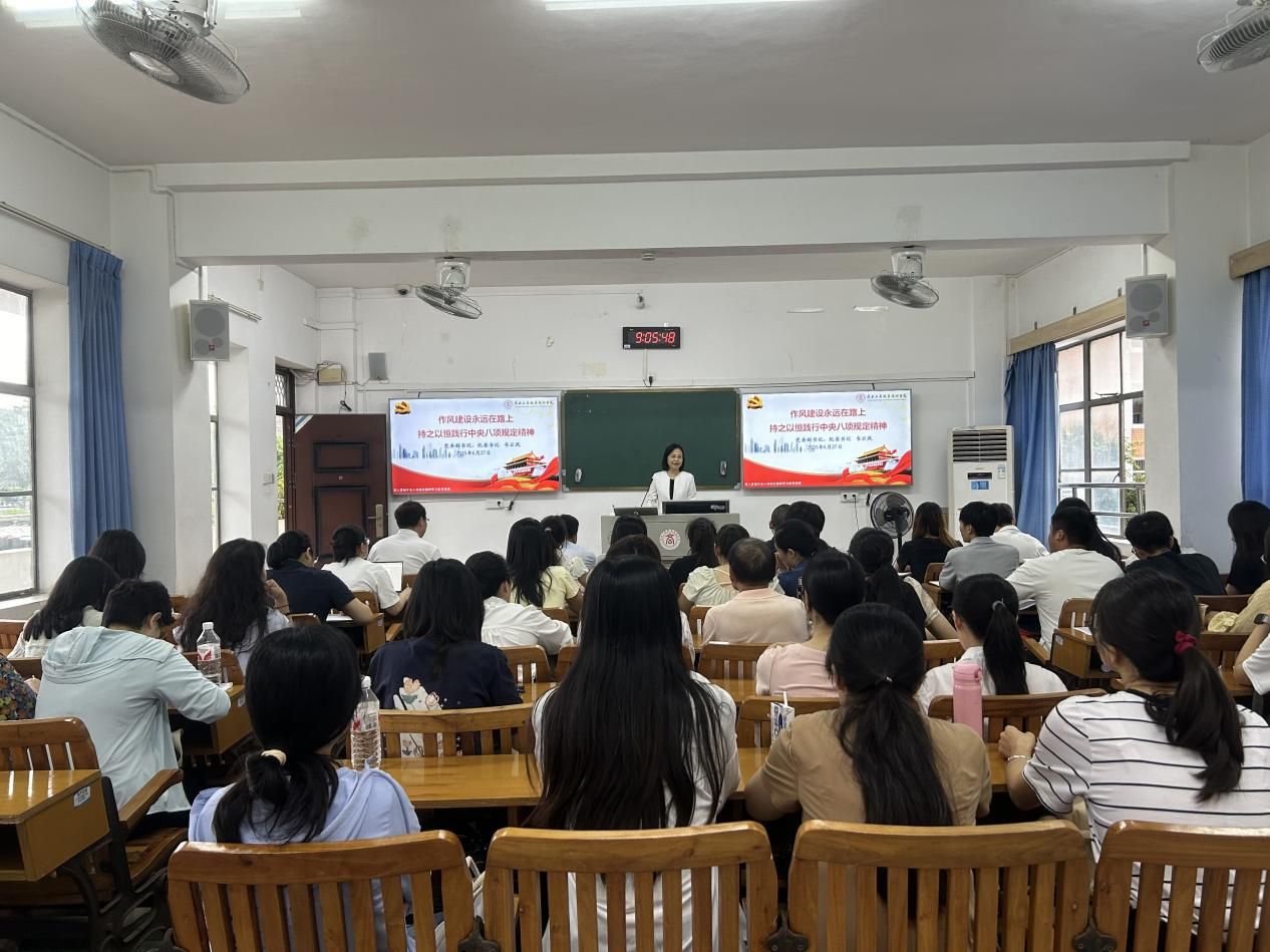 最后,韦云凤强调,作风建设永远在路上,要学习好运用好深入贯彻中央八项规定精神的成效和经验,进一步加强党的建设,持续巩固风清气正的政治生态,为学校高质量发展提供坚强保障。