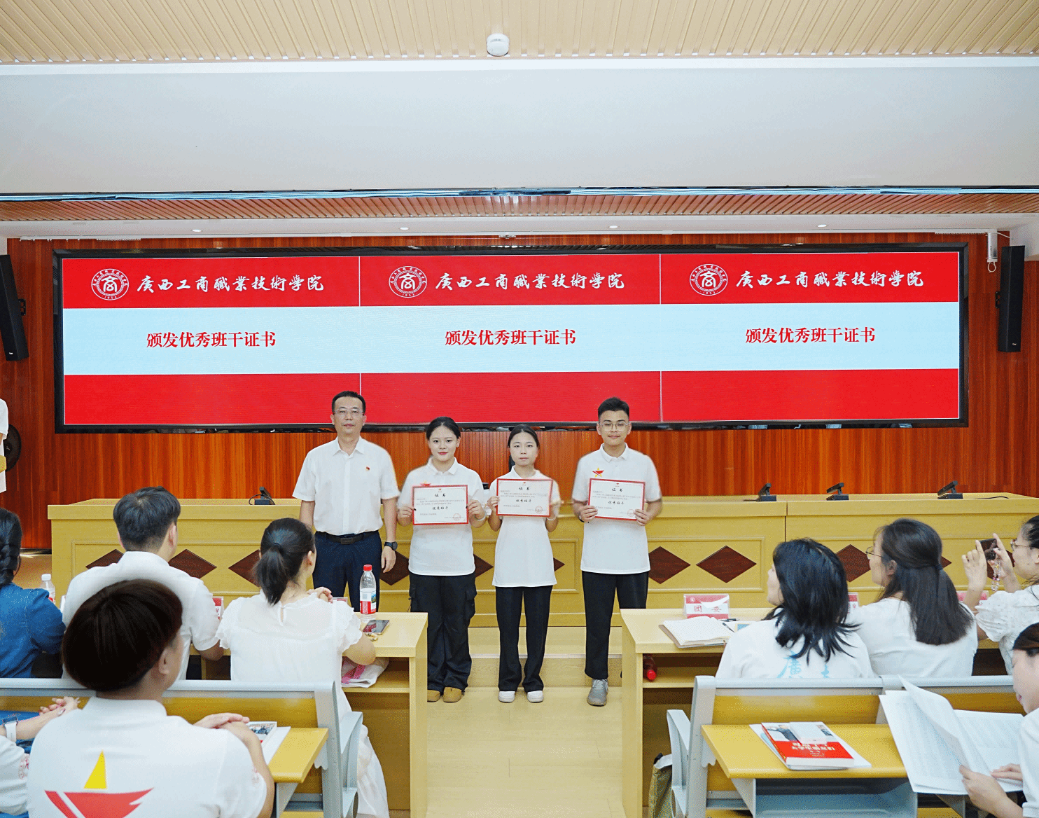 (学校党委副书记、校长刘进为学员颁发优秀班干证书)