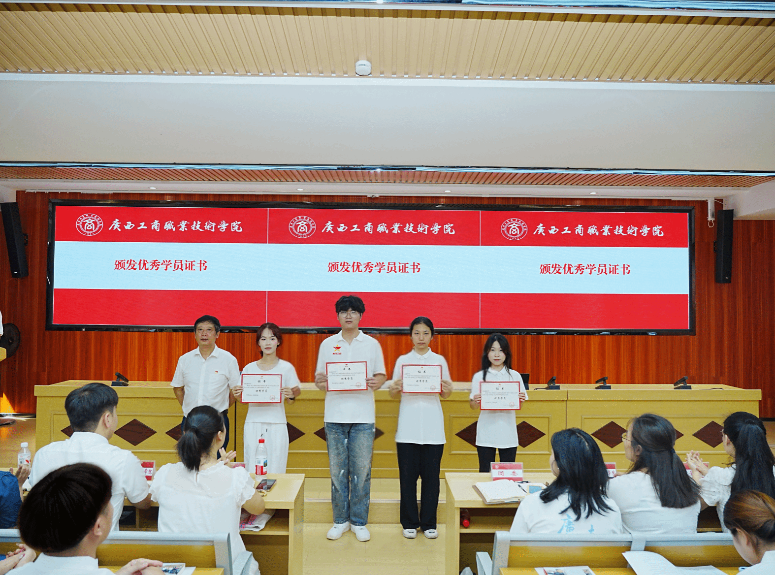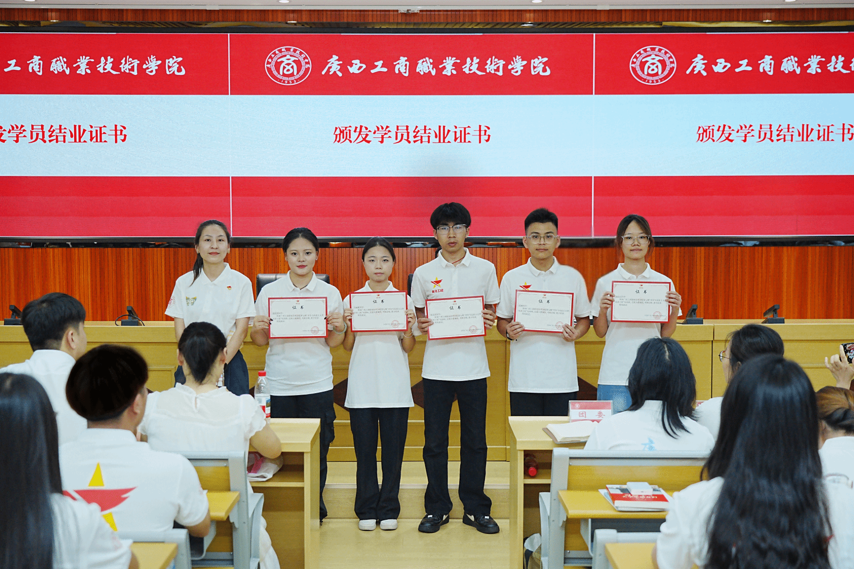 (校团委副书记朱焰为学员颁发结业证书)