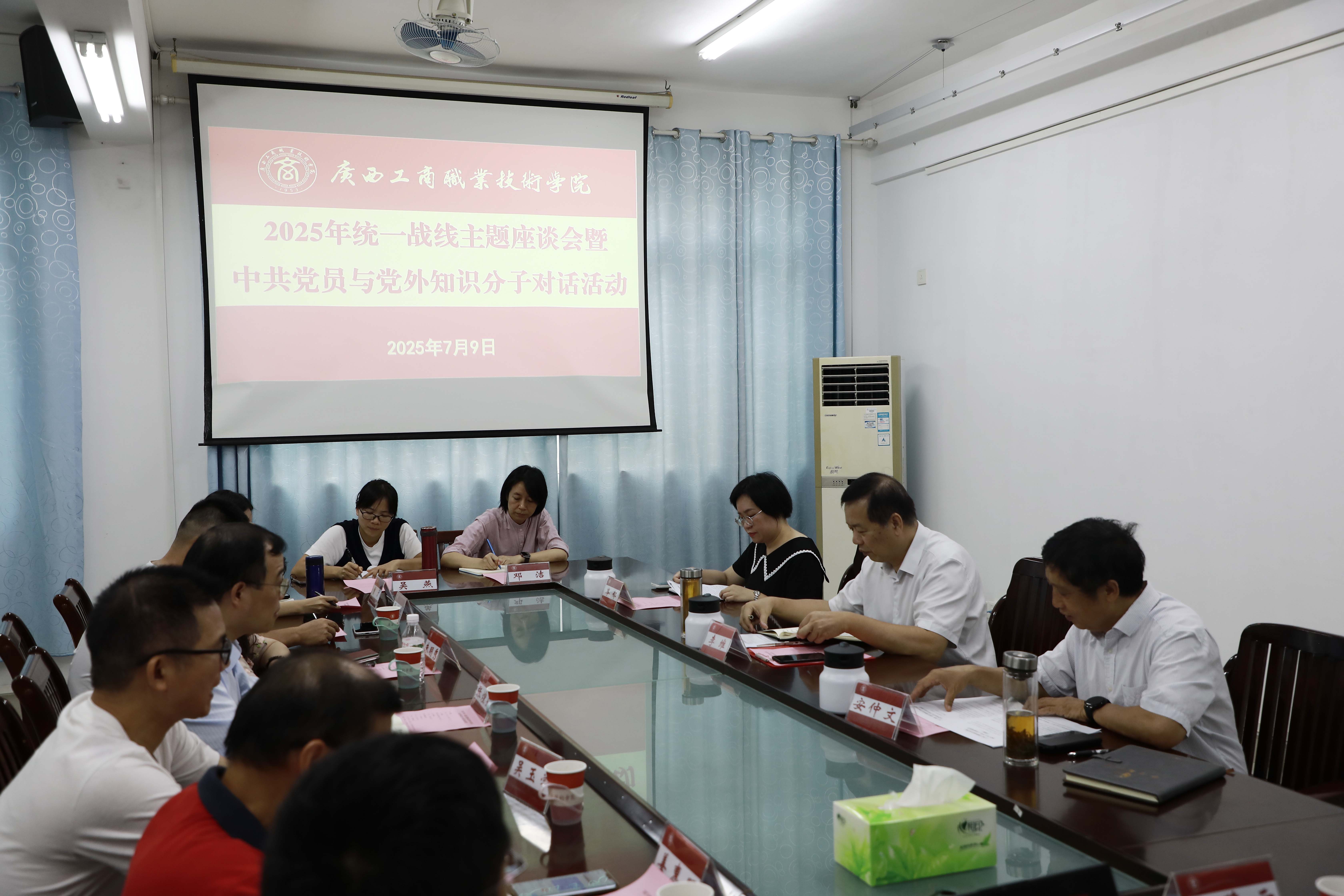 为深入贯彻落实习近平总书记关于做好新时代党的统一战线工作的重要思想,加强学校党委与各民主党派、统战团体之间的沟通和交流,7月9日,学校在鹏飞校区举办2025年统一战线主题座谈会暨中共党员与党外知识分子对话活动。学校党委书记李维出席活动并讲话,党委副书记安仲文主持会议。学校统战部负责人,学校民主党派教职工、无党派人士、知联会成员代表参加本次活动。