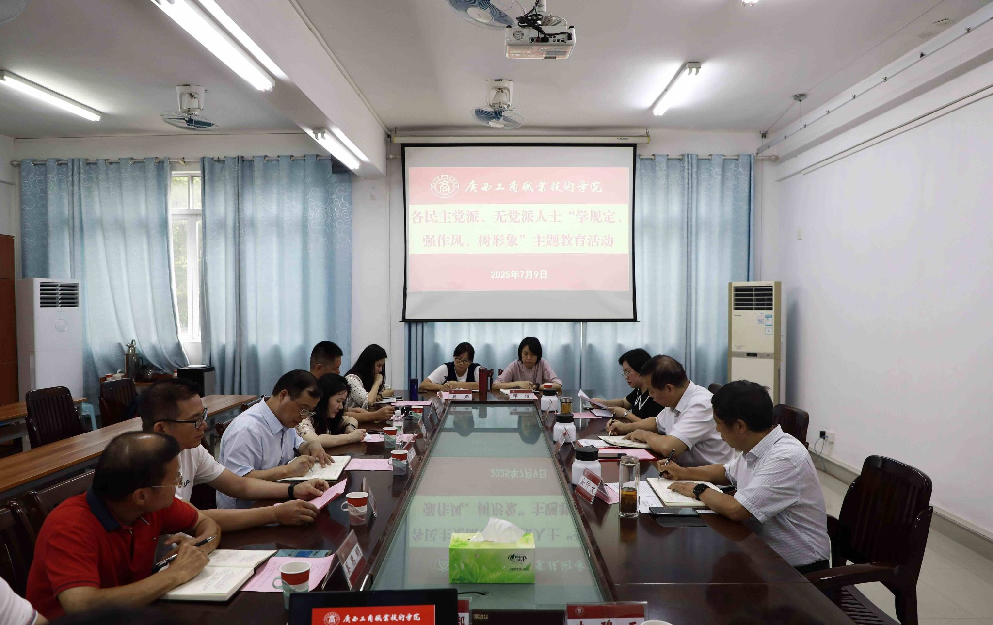 安仲文向参会人员通报学校2025年上半年各项工作进展与成效。与会党外相关人士怀着高度责任感和主人翁意识,围绕“学校教育教学改革纵深推进、新一轮‘双高’建设战略实施、教学质量内涵式提升、高水平师资队伍建设、人工智能赋能学科发展新机遇”等核心议题踊跃发言、畅抒己见。