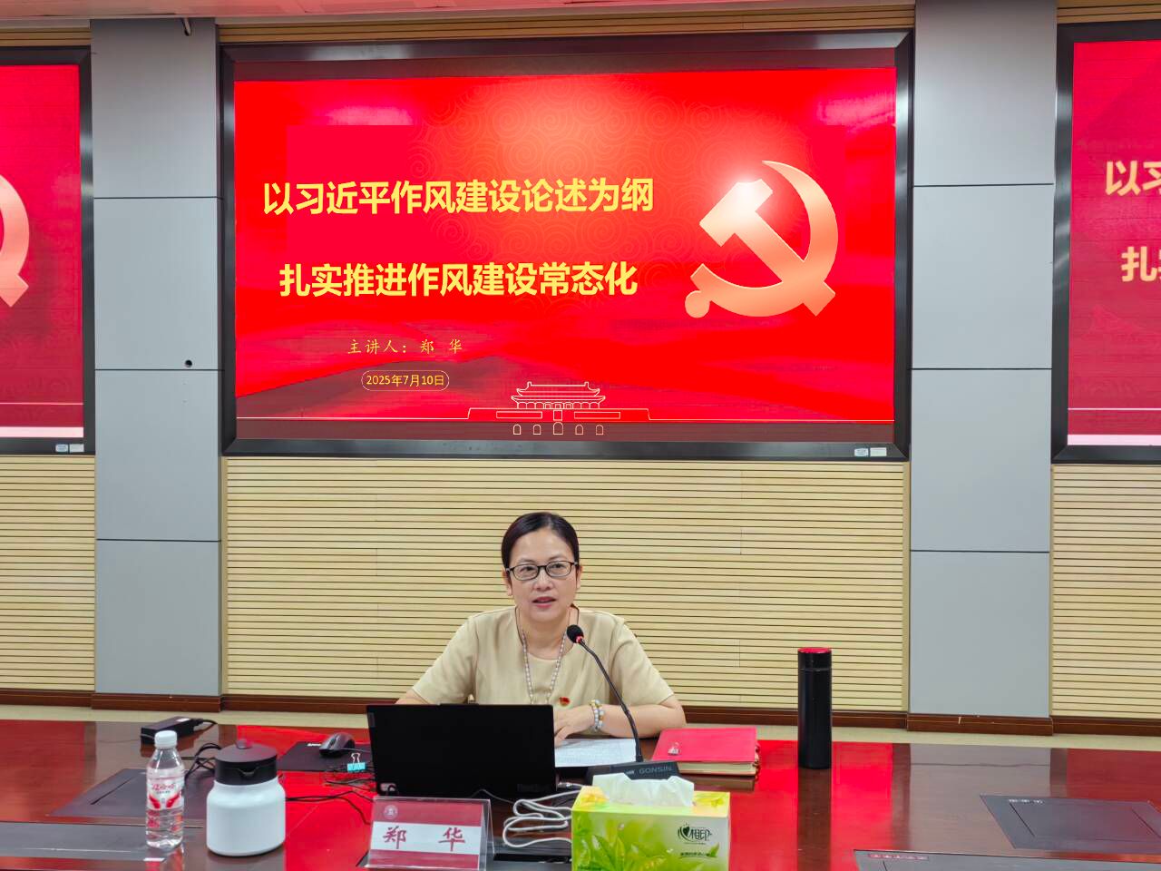 7月8日,学校副校长郑华到基层党组织开展深入贯彻中央八项规定精神学习教育专题党课,智慧设计学院党总支、计划财务处党支部、国有资产管理处党支部全体党员参加活动。