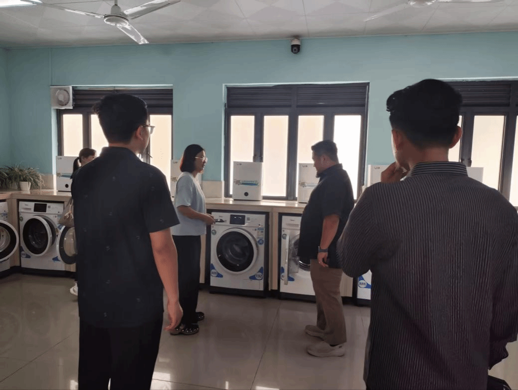 (参观学生宿舍洗衣房)