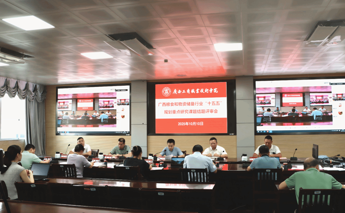10月10日,自治区粮食和物资储备局组织召开广西粮食和物资储备行业“十五五”规划重点研究课题结题评审会,pp电子协助承办此次会议。会议旨在对年度立项的4个重点研究课题成果进行集中评审验收,确保课题研究质量。会议评审专家由中国粮食研究培训中心总经济师姜明伦、河南工业大学教授钱向明、广西中储粮仓储设备科技有限公司总经理龙丽娜、广西大学中国—东盟经济学院经济系主任郭南芸以及pp电子官方网站教务科研处副处长、无党派人士张煌强组成。各单位课题负责人及教务科研处相关人员参加会议,评审会由自治区粮食和物资储备局规划建设处副处长邓哲主持。