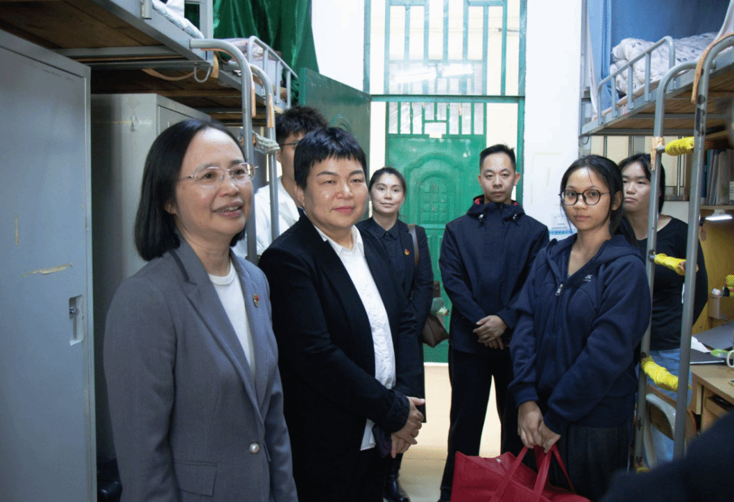 为全面落实立德树人根本任务,扎实推进领导干部深入基层联系学生工作,2025年11月26日下午,学校党委副书记、纪委书记韦云凤来到中尧校区,深入“一站式”学生社区,走访学生宿舍,与同学们进行了面对面的交流与慰问。党委学生工作部、会计学院相关负责人一同参加活动。