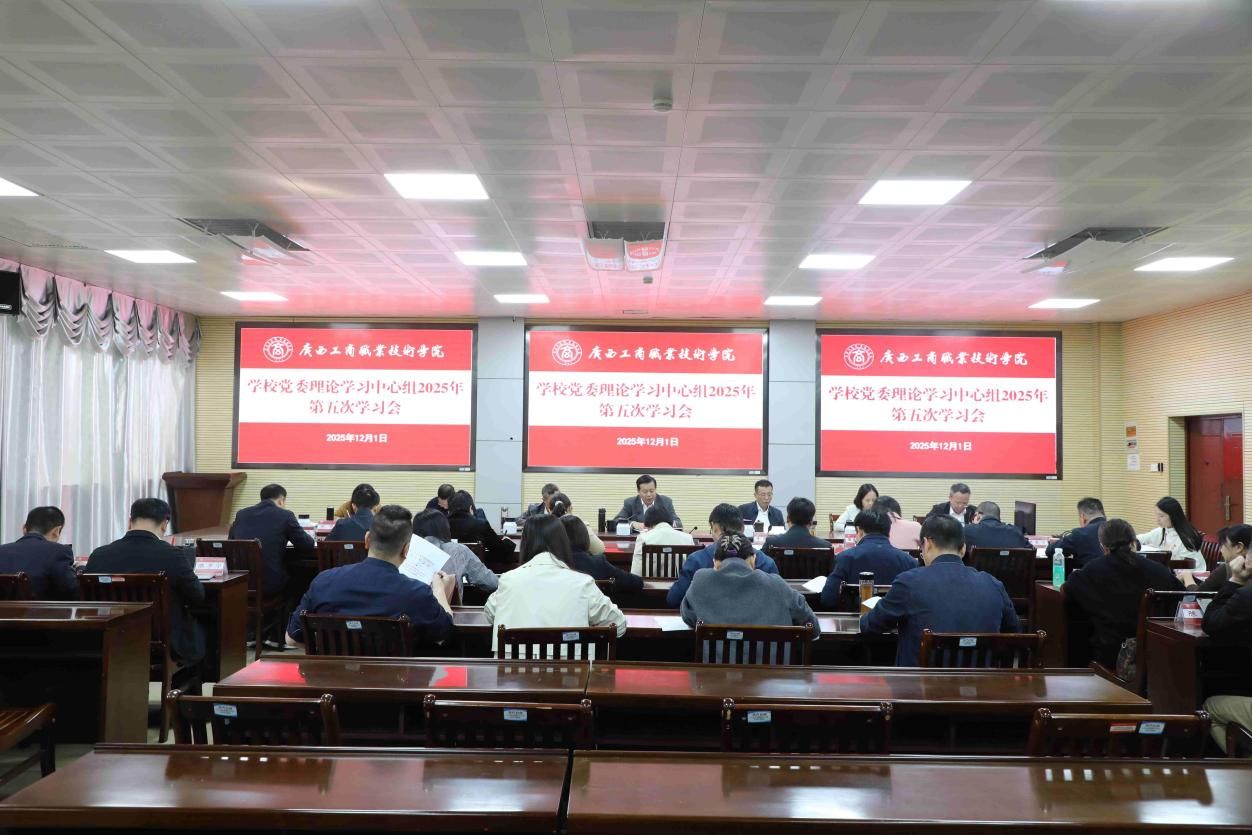 12月1日,学校在鹏飞校区召开党委理论学习中心组2025年第五次学习会,重点围绕党的二十届四中全会精神、中共中央关于制定国民经济和社会发展第十五个五年规划的建议等内容开展学习研讨。学习会由学校党委书记李维主持。学校党委委员,学校各部门、各单位主要负责人,各党总支、各直属党支部书记(负责人),工会、团委负责人参加会议。