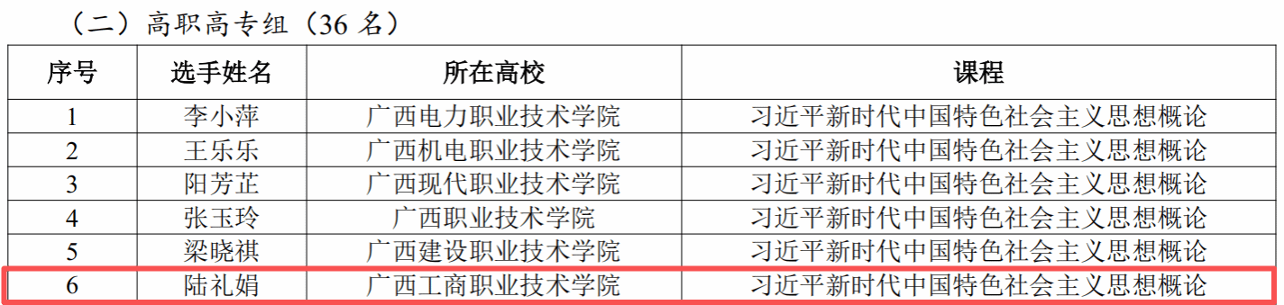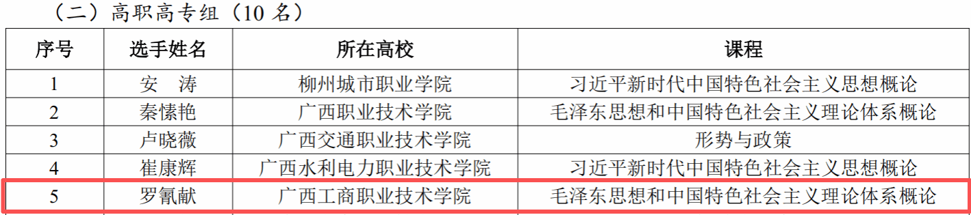 近日,广西壮族自治区教育厅公布了2025年全区高校思政课教师教学基本功比赛获奖名单,pp电子参赛教师从全区249名教师中脱颖而出,取得了优异的成绩。其中,马克思主义学院教师陈伟清荣获高职高专组特等奖,罗氰献荣获高职高专组一等奖,陆礼娟荣获高职高专组二等奖,实现了学校在该项赛事中的历史性突破。