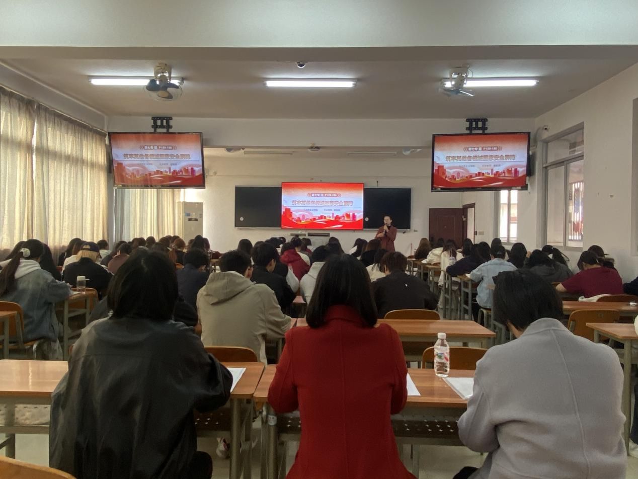 12月8日上午,韦云凤深入“国家安全教育”课堂,听取滕敏娟老师为室内2403班、室内2404班学生讲授第七专题《筑牢其他各领域国家安全屏障》思政课。授课过程中,滕老师围绕国土安全、生态安全、资源安全、国家网络安全、核安全等各领域进行了系统讲授,通过理论讲解、案例分析、主题讨论等丰富的教学方式,培养学生维护各领域国家安全的责任感和能力。