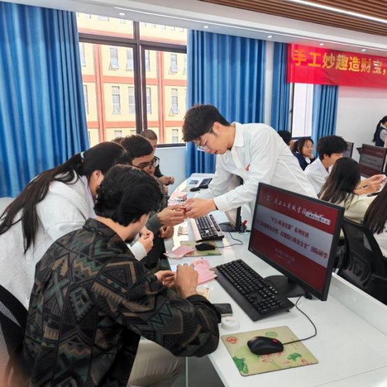 在“财智手工探趣”中,国际学生通过认识人民币、趣味练功券折纸,既提升中文认知能力,又在手工实践中体会会计工作的严谨性与中国传统手工艺术的魅力,间接了解粮食贸易背后的金融文化逻辑。