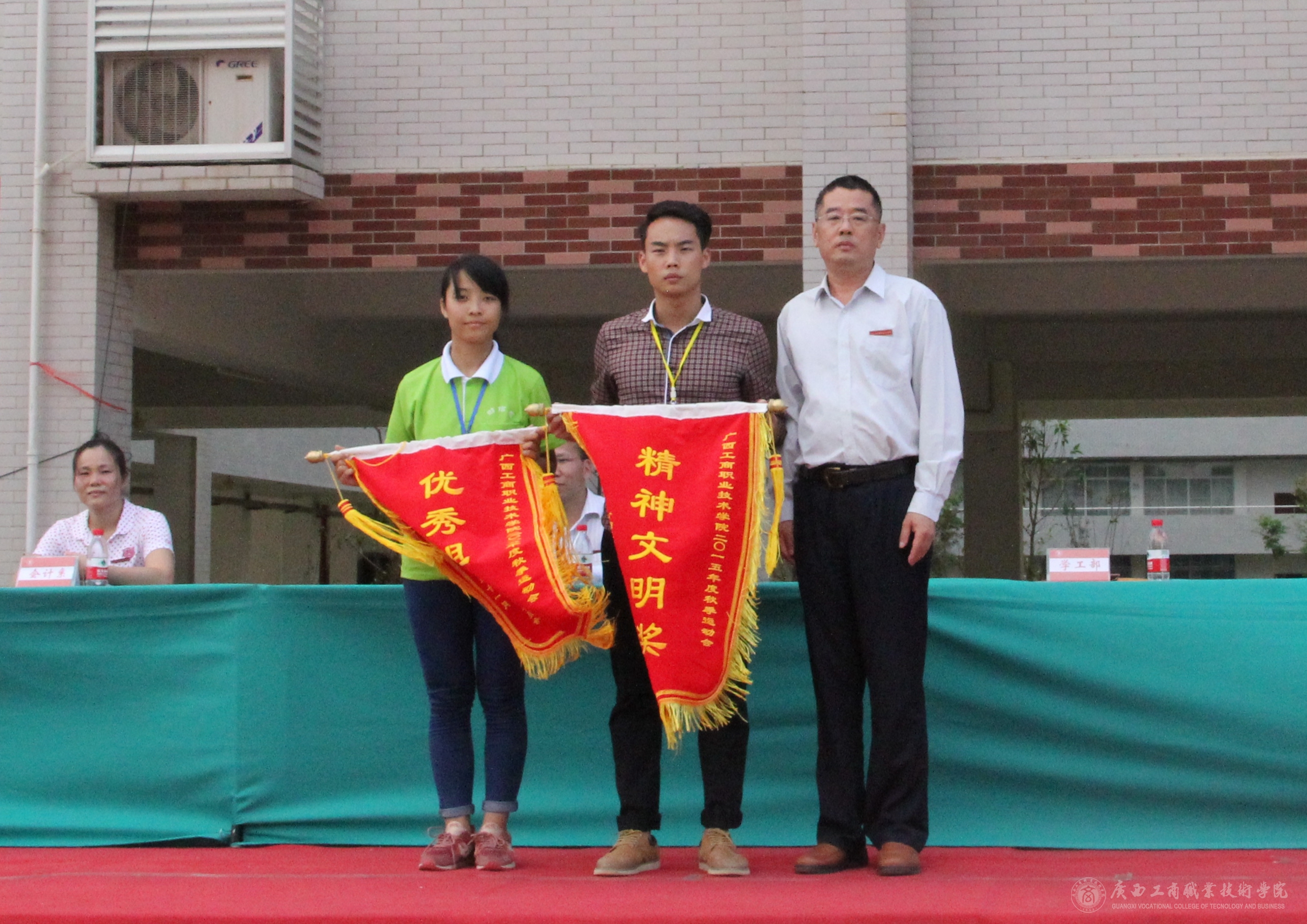 在本次校运会成绩宣布后,是振奋人心的颁奖仪式。由学院党委学工部部长付光,教务科研处副处长阙勇平对获得各项比赛一、二的团体颁奖。