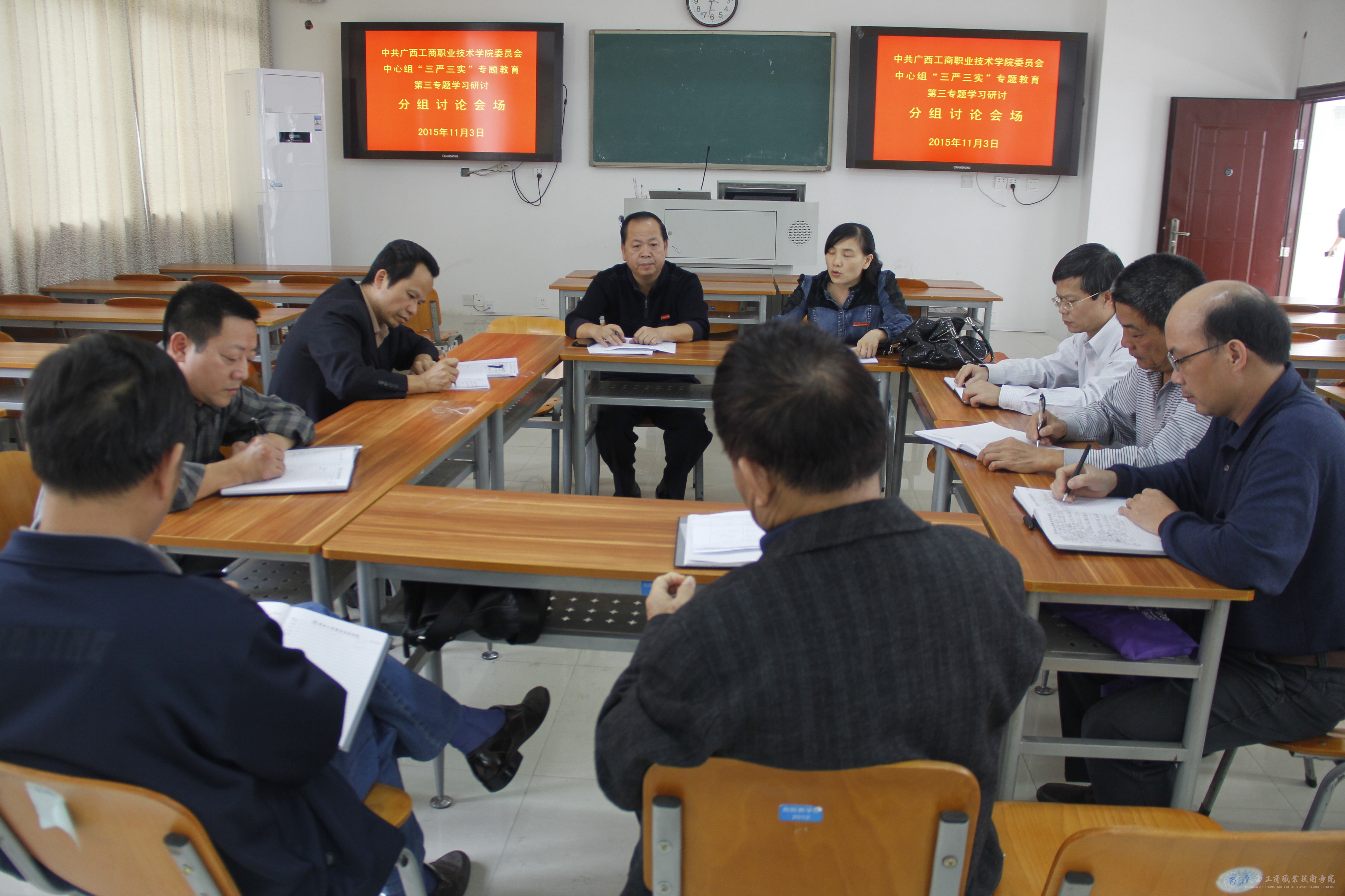2015年11月3日上午9时,我院在教学楼2119会议室召开党委中心组“三严三实”专题教育第三专题学习研讨会。学院中层以上领导干部参加此次研讨会,会议由覃武云书记主持。