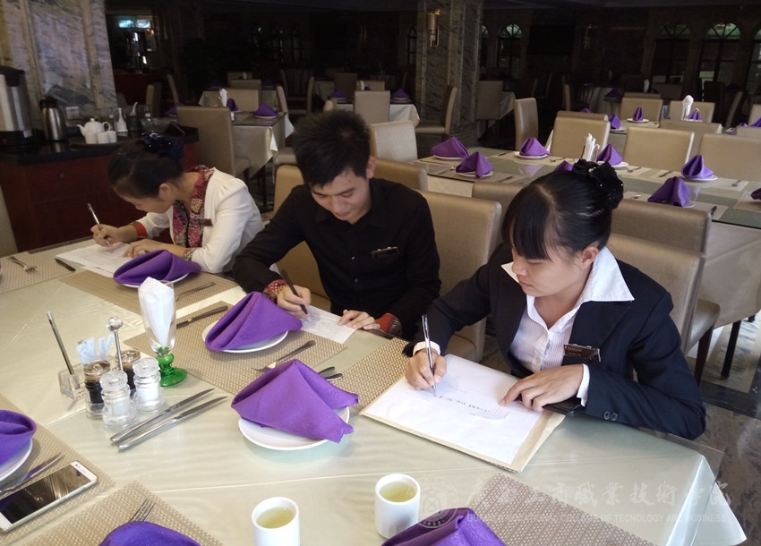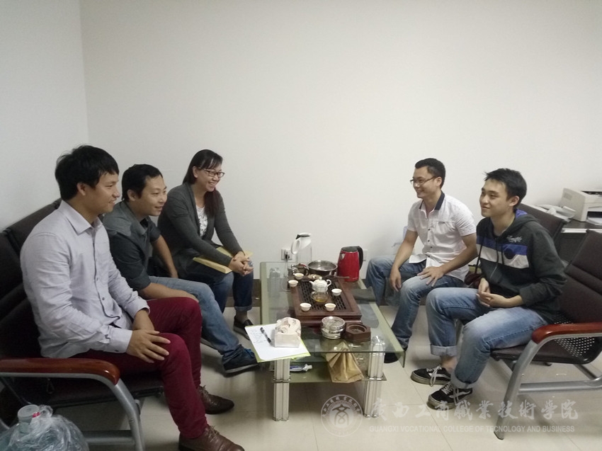 与在北海南洋国际大酒店实习的吴秋良、黄金玲同学座谈时,检查组老师详细了解了他们的生活、工作、及待遇情况。这两位同学对酒店各方面工作待遇都感到满意,同时酒店主管领导对学生的生活、工作、学习十分关心,学生在实习工作中遇到的问题与困难都给予及时的沟通和解决问题。
