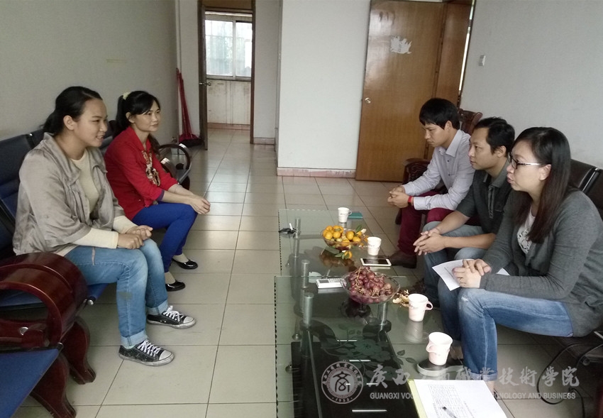 顶岗实习检查小组与叶琼莲经理和实习生李林燕交流座谈