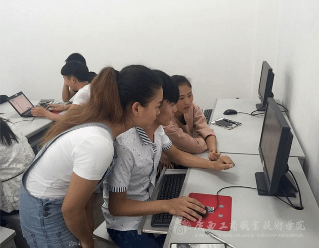学院易班工作站的同学们在电脑前按照陈老师的讲解进行相关操作