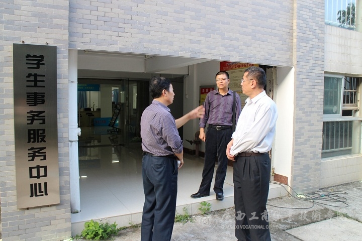 赛后,在莫跃宁处长的带领下,实地参观了广西交通职业技术学院的四塘校区的沙盘模型、宿舍建设、学生事务服务中心等,并就本次竞赛的组织和实施、辅导员(班主任)服务与管理、宿舍管理、一站式服务、学工建设工作等问题进行了深入交流。